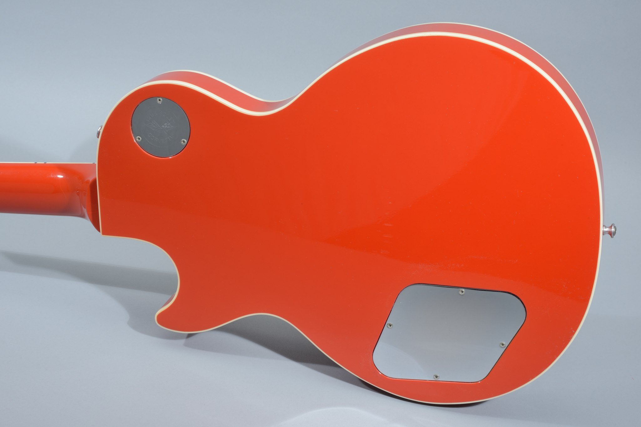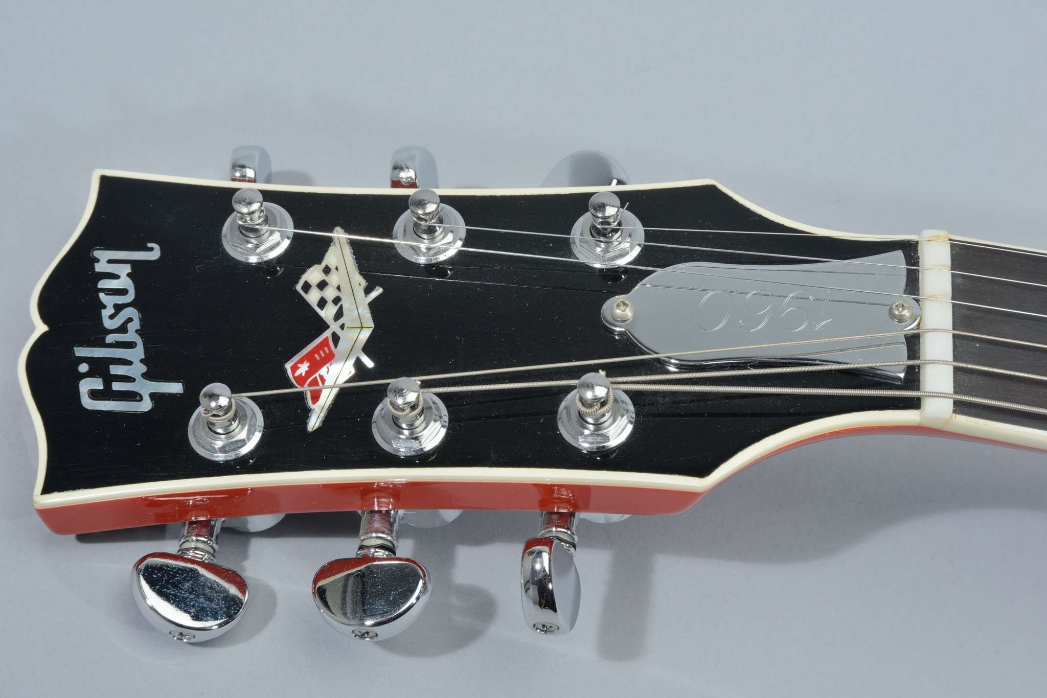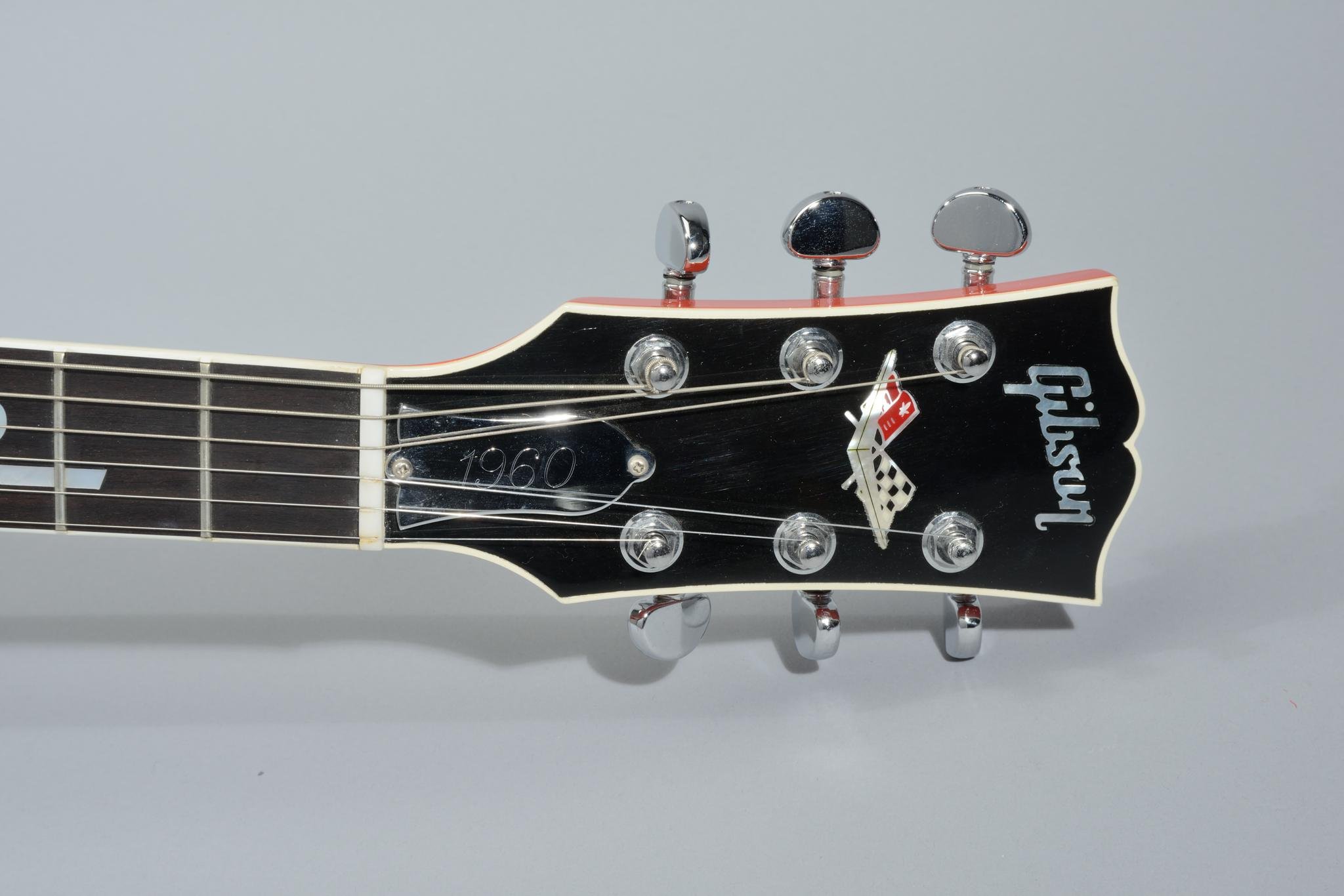 The Corvette was produced in 1995 to commemorate the 42nd anniversary of General Motor's Chevrolet Corvette and Gibson's Les Paul's 43rd anniversary. The ebony fretboard inlayed with pearl Corvette script from 1960. The headstock is inlayed with the Chevrolet Corvette crossed flags. The back cover plates and truss rod cover are engraved chrome plated brass and the pickup covers are engraved with ''283'' and ''fuel injection'' in the original script. The maple top is hand carved to simulate the famous side scoop of the 1960 Corvette.