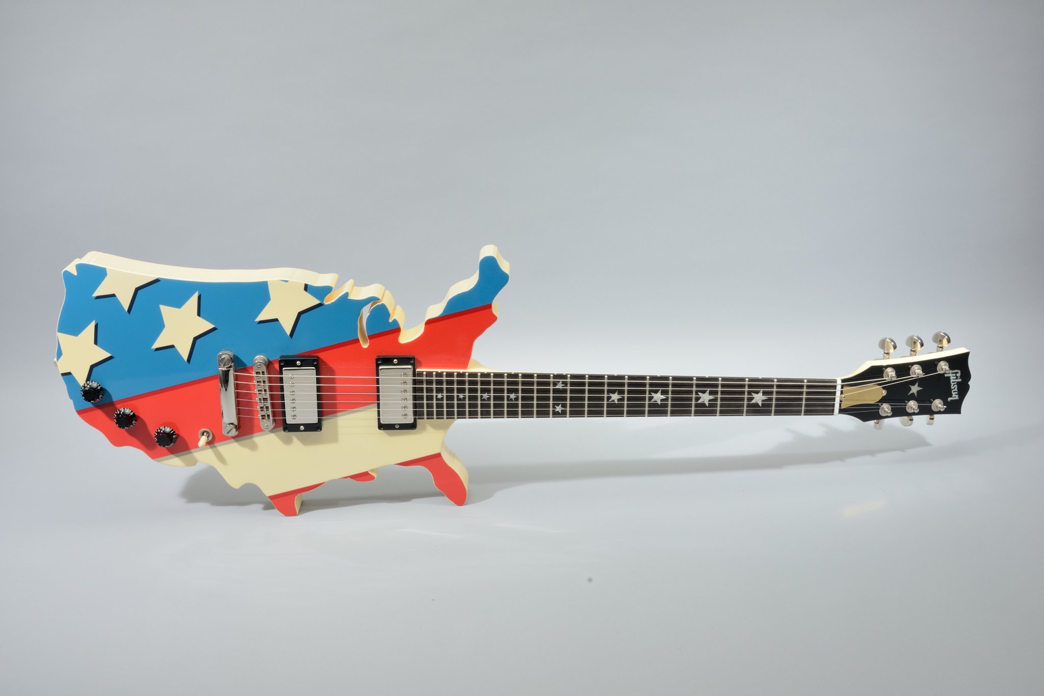 Gibson 1999. USA Map US Stars & Stripes Flag Design with White Back.