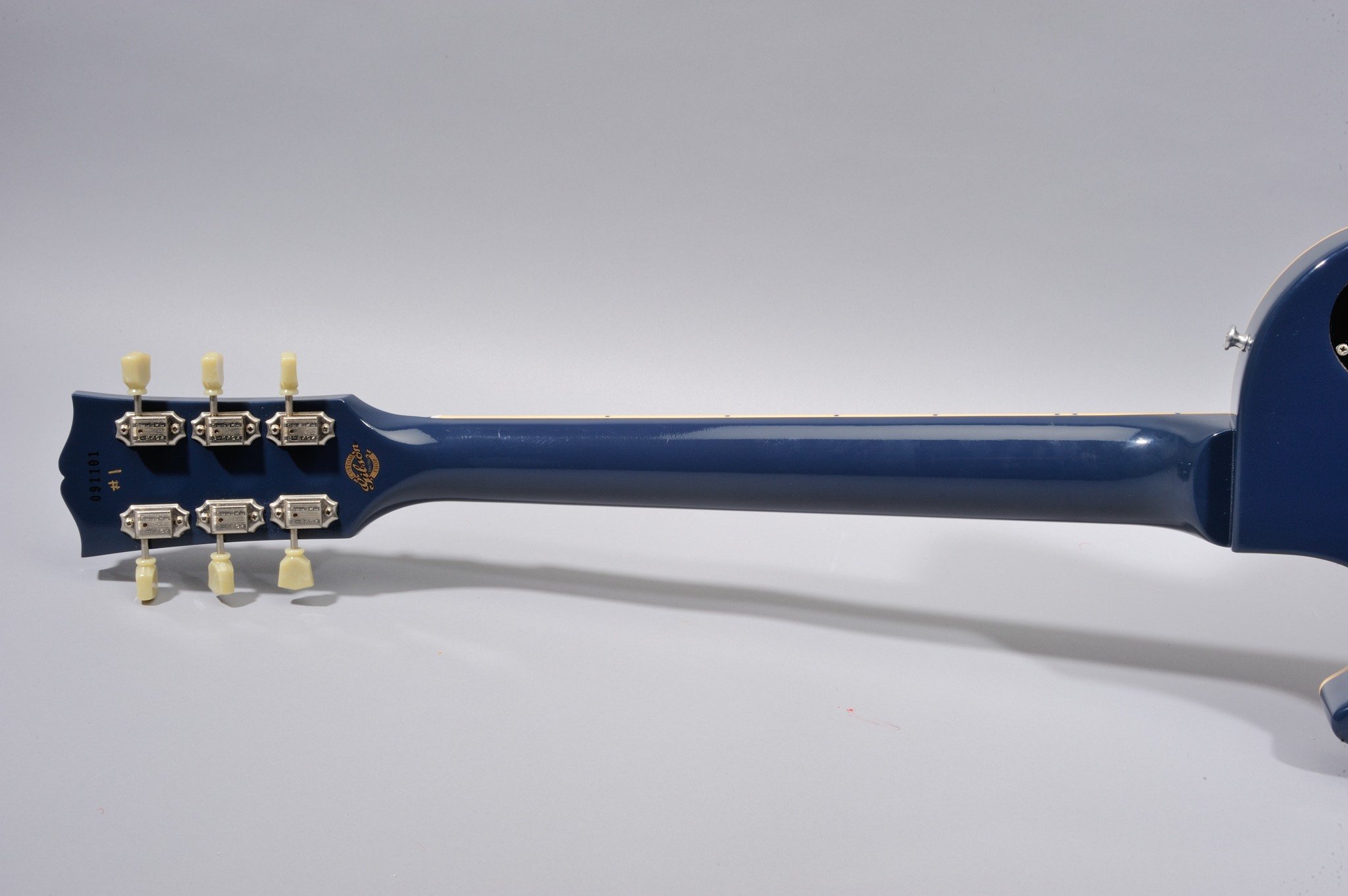Already in 2001, the next run of 50 guitars, 25 with blue back and 25 with red back were built with the correct US flag and numbered as regular Gibson guitars.