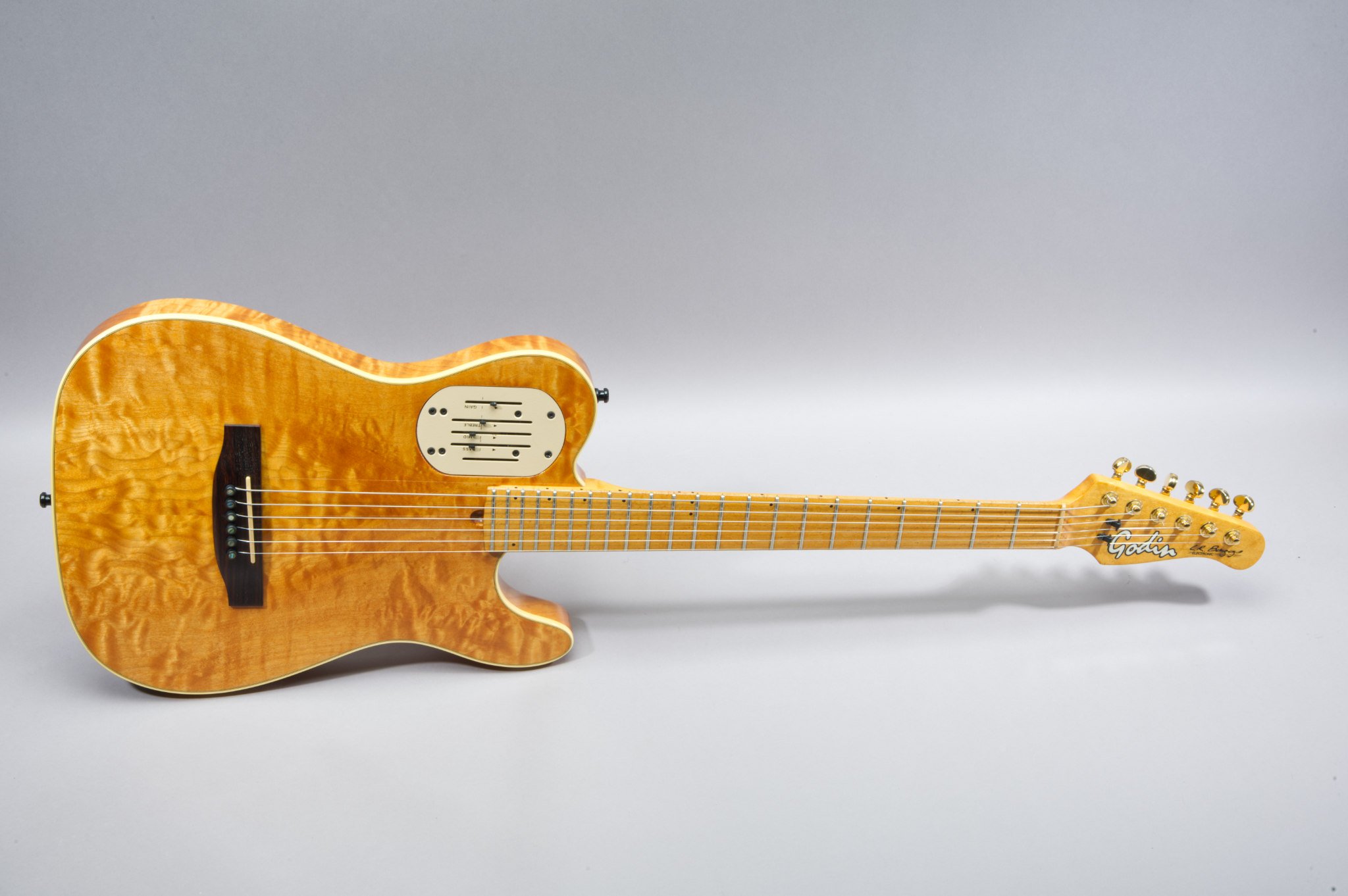 Godin 1995 Acousticaster Tele 6 Ltd in Trans Amber Finish.