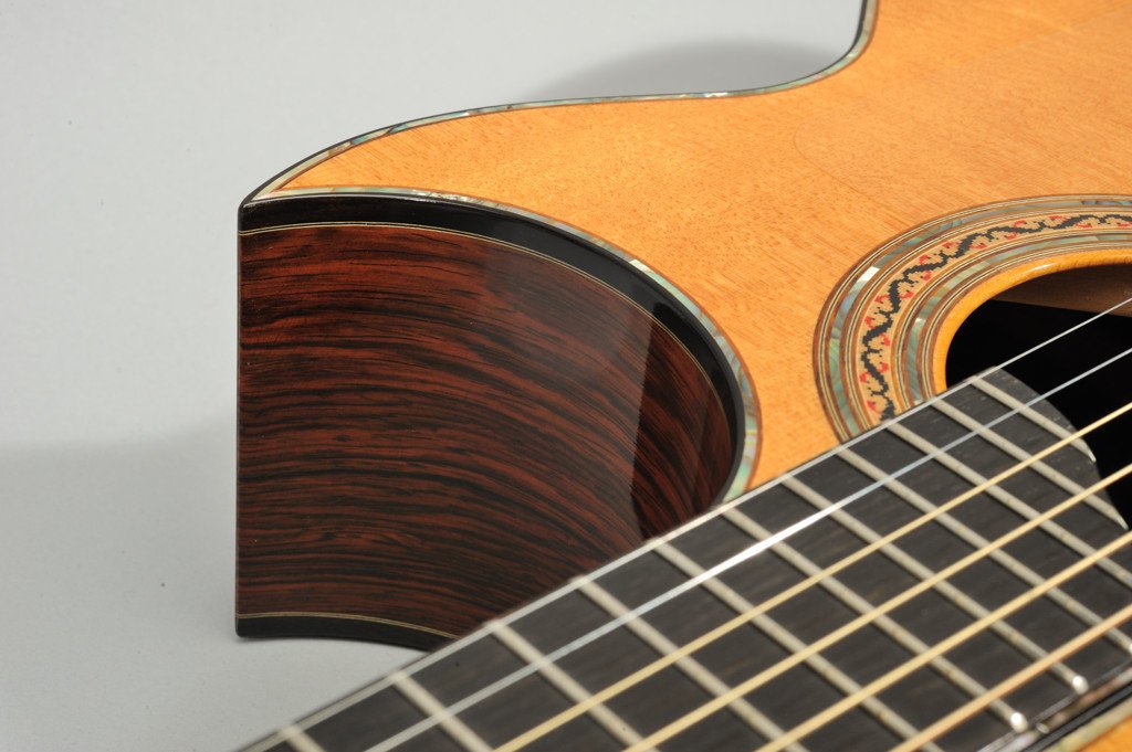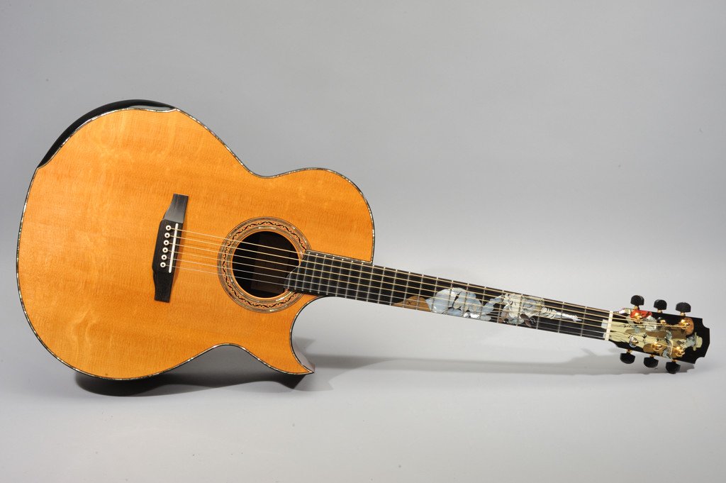 William Laskin decided he wanted to be a guitar maker at age 17 when he saw a Jean Larrivee instrument. He apprenticed with Jean for two years before setting out on his own. He has been building guitars since 1971. His goal for his guitars is “clarity, sweetness of tone, and a full, round musicality.” Laskin is also known for his intricate inlay work. Larry Robinson, author of The Art Of Inlay, calls Laskin “the most astonishing inlay artist in North America.”