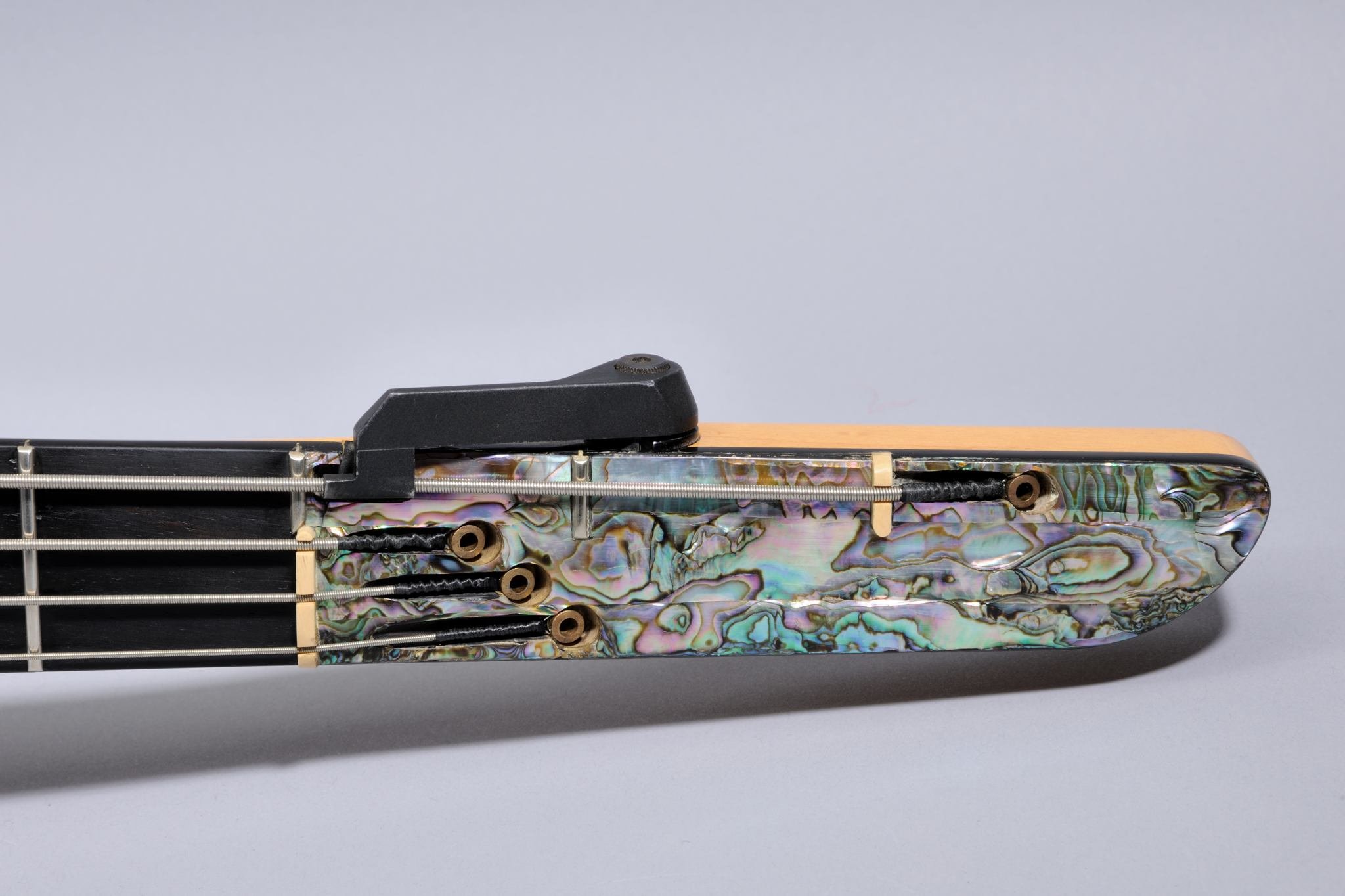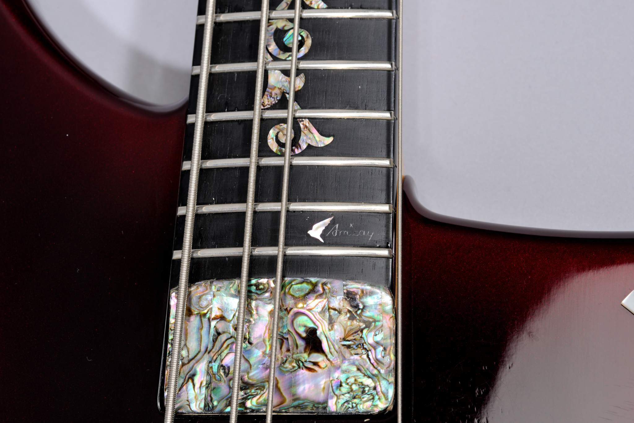 Ebony Fretboard with Paua Schell Inlays and George's Signature on the last Fret.