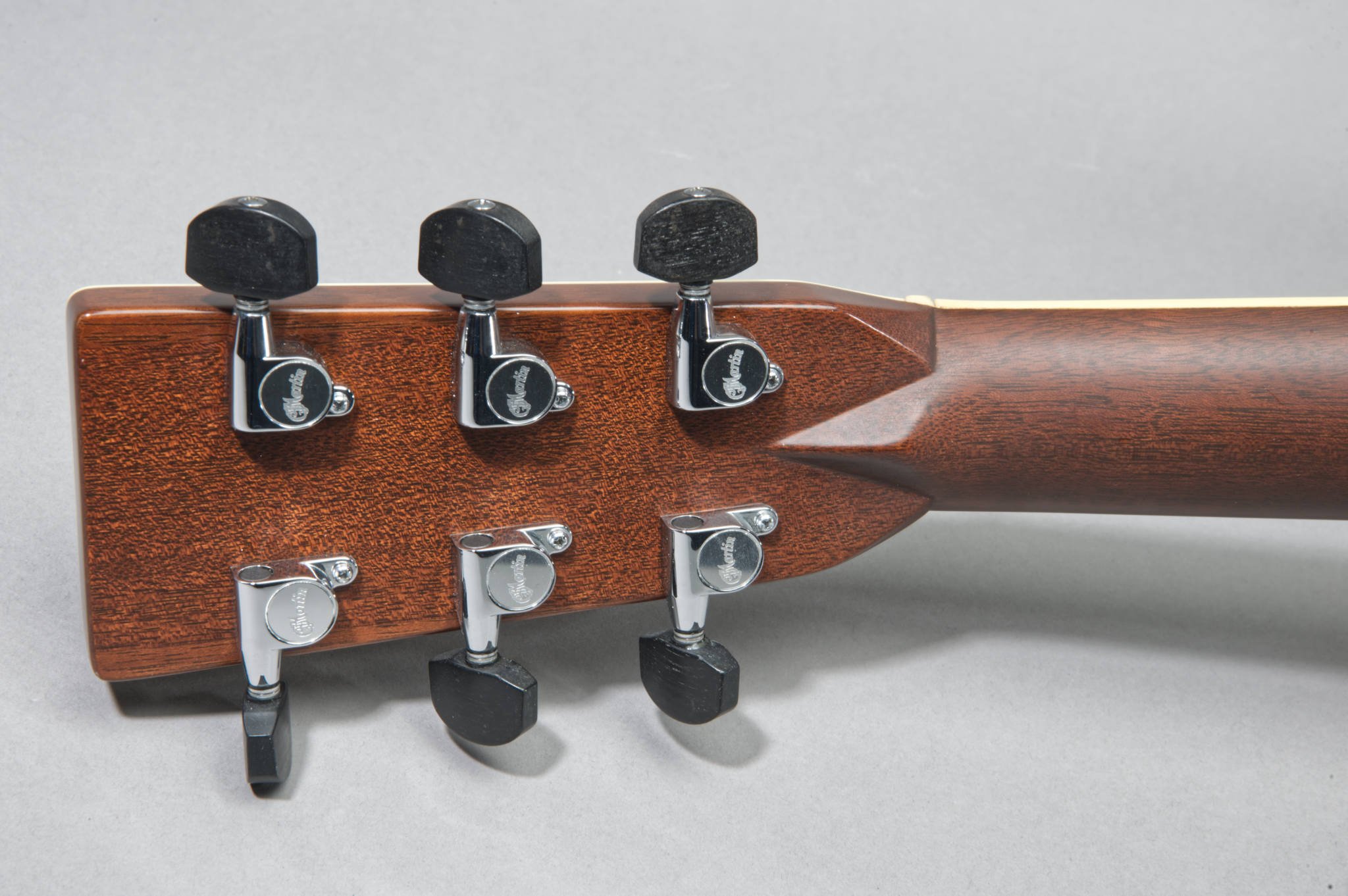 This guitar showcases extraordinary purfling, even for a Signature Edition Martin. The top features seven-ply, differential width black/white purfling while the back is encircled by five-ply black/white fine line purfling. Black/white purfling accents the sides, end piece, heelcap, headstock and fingerboard. To show off the purfling to best advantage, the guitar is bound in grained ivoroid throughout: body, neck and headstock. A gloss finish on the body highlights the purfling; the neck sports a satin finish for playing comfort.