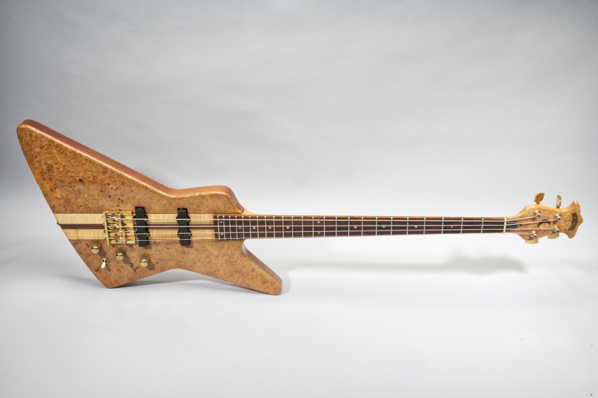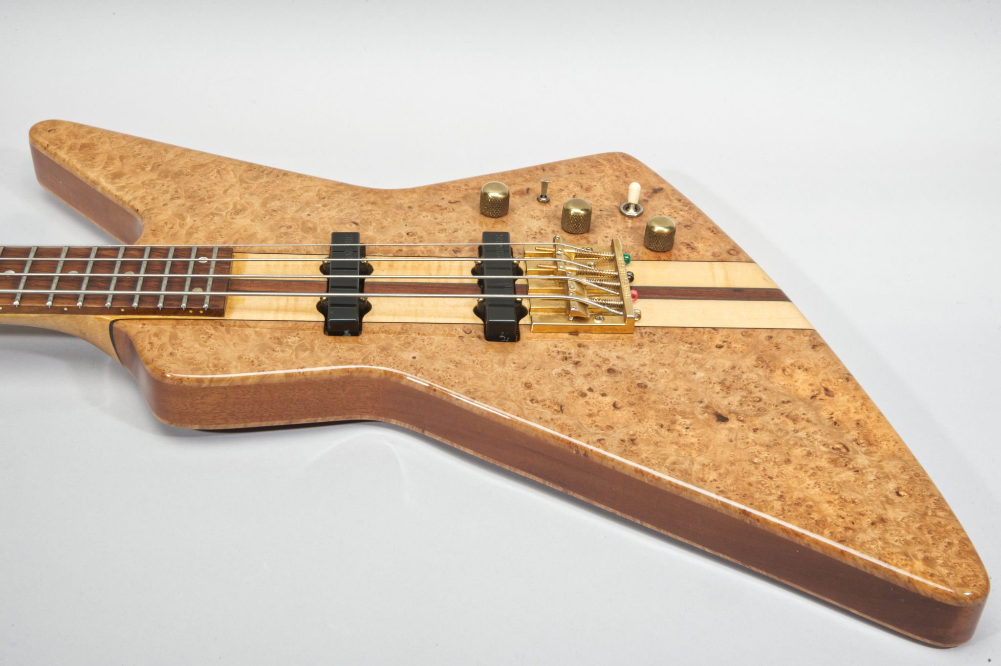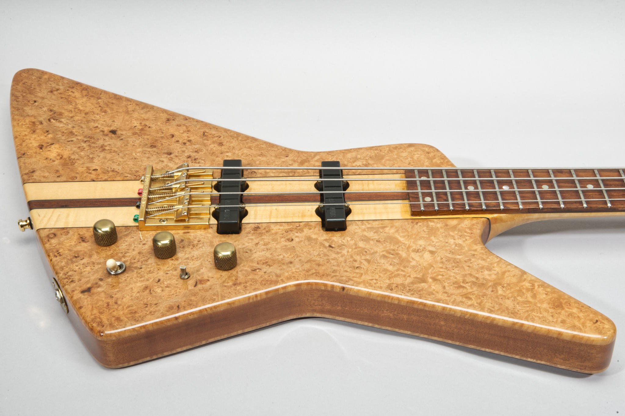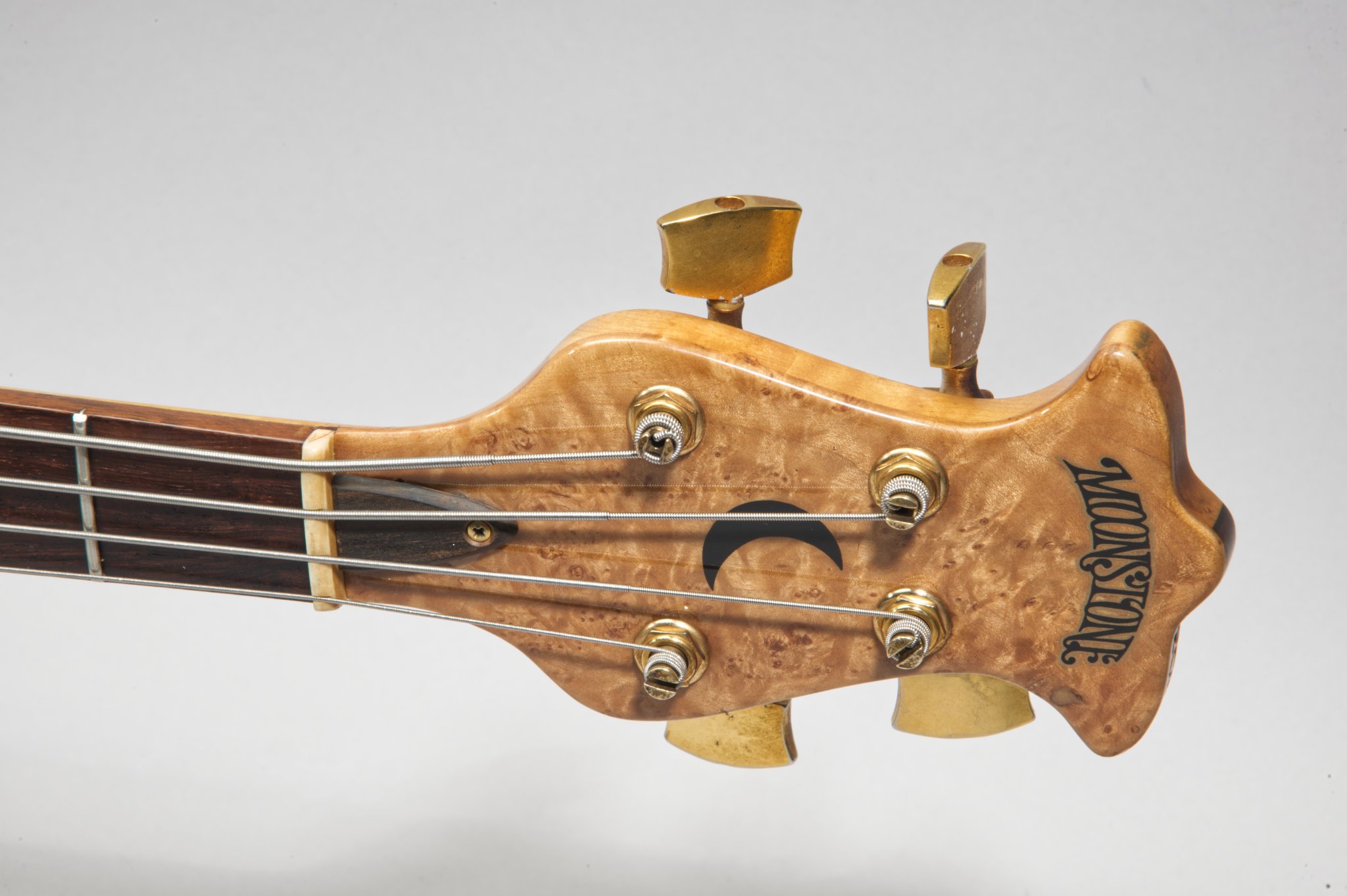 Moonstone 1980. Exploder 4 String Bass Burl Maple in Natural Finish.
