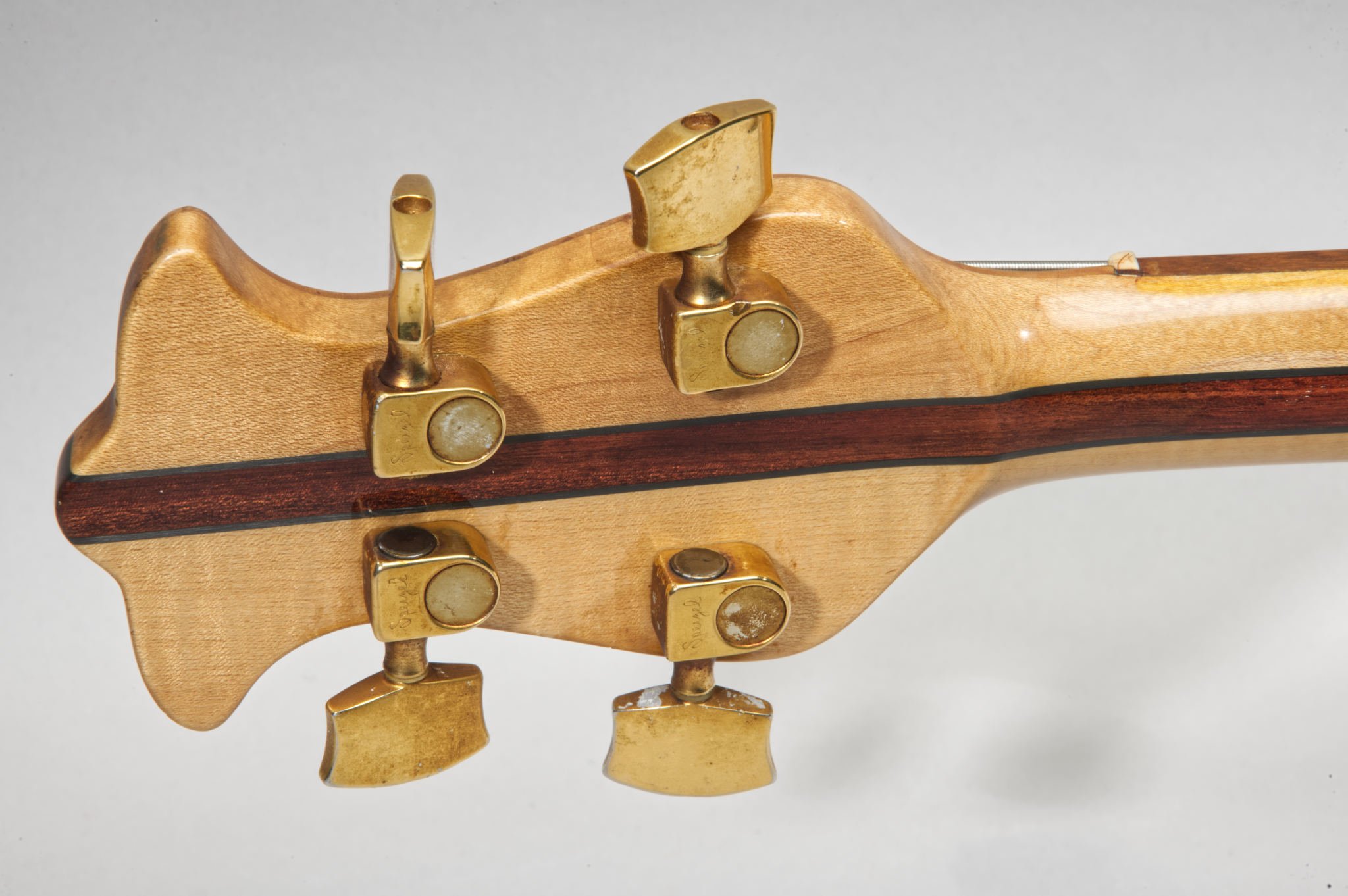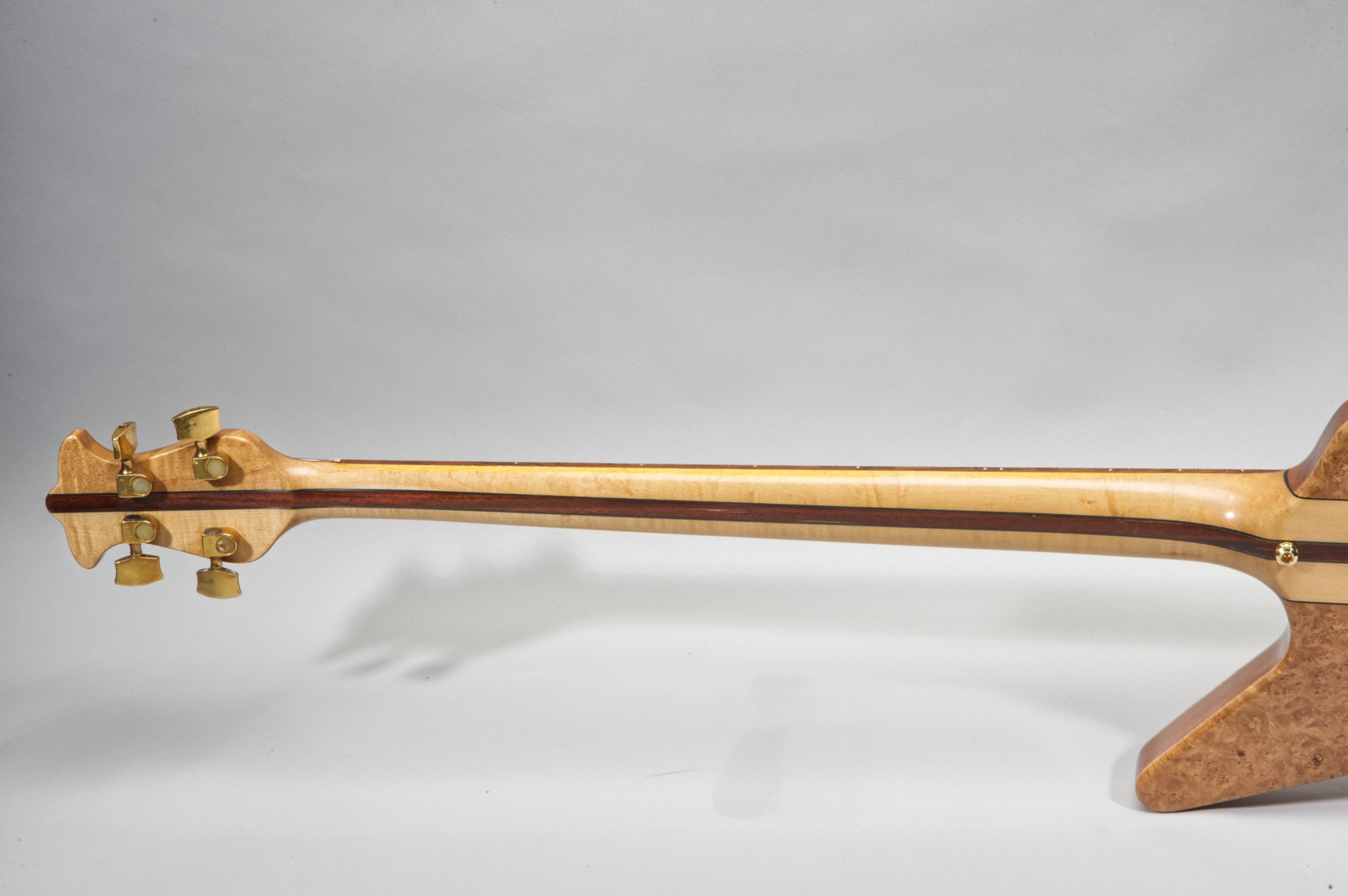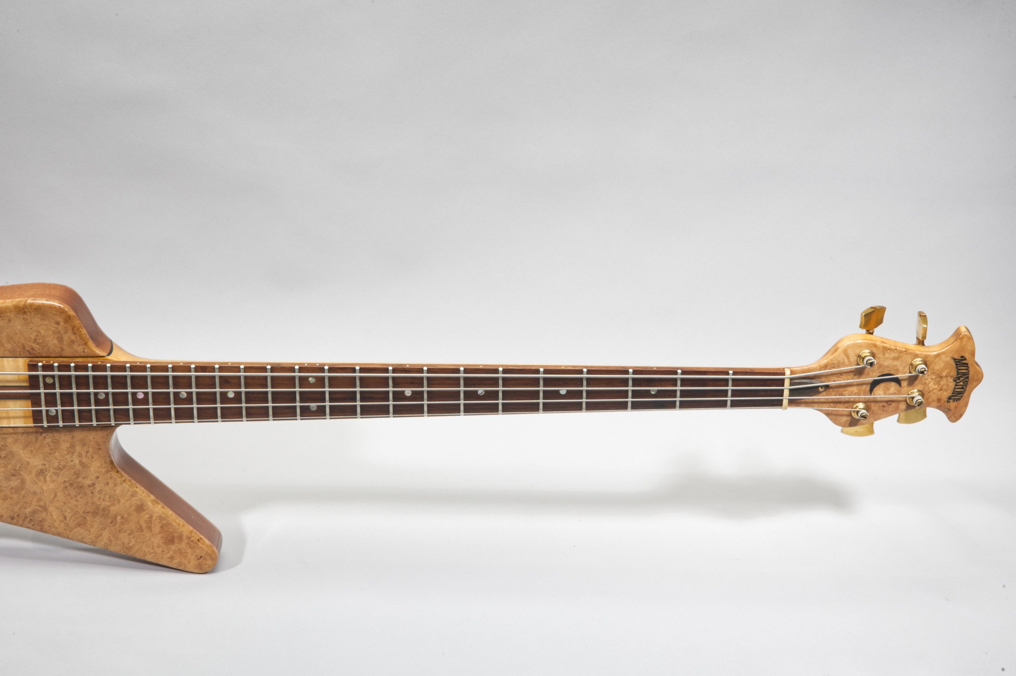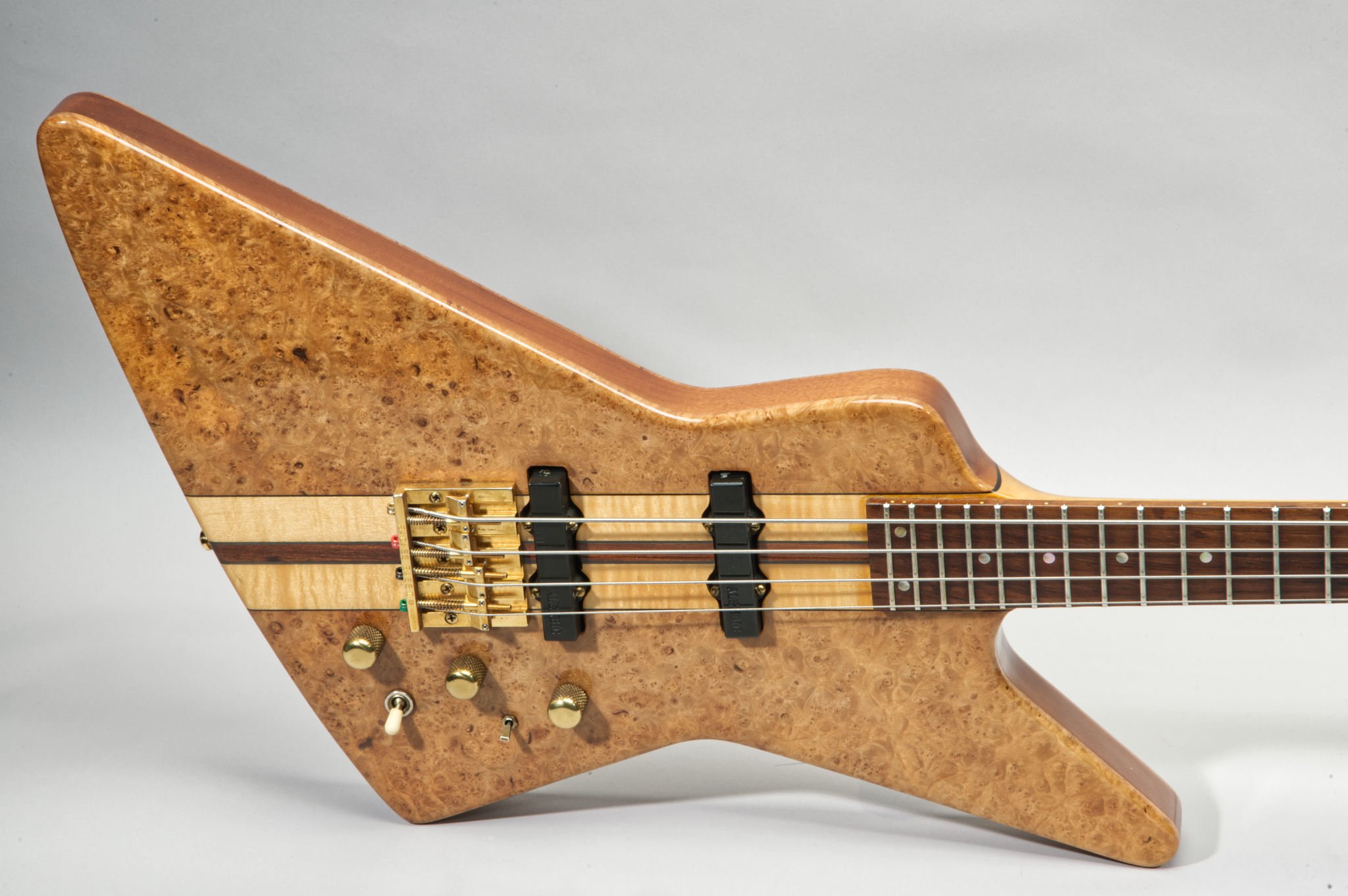 Moonstone 1980. Exploder 4 String Bass Burl Maple in Natural Finish.
