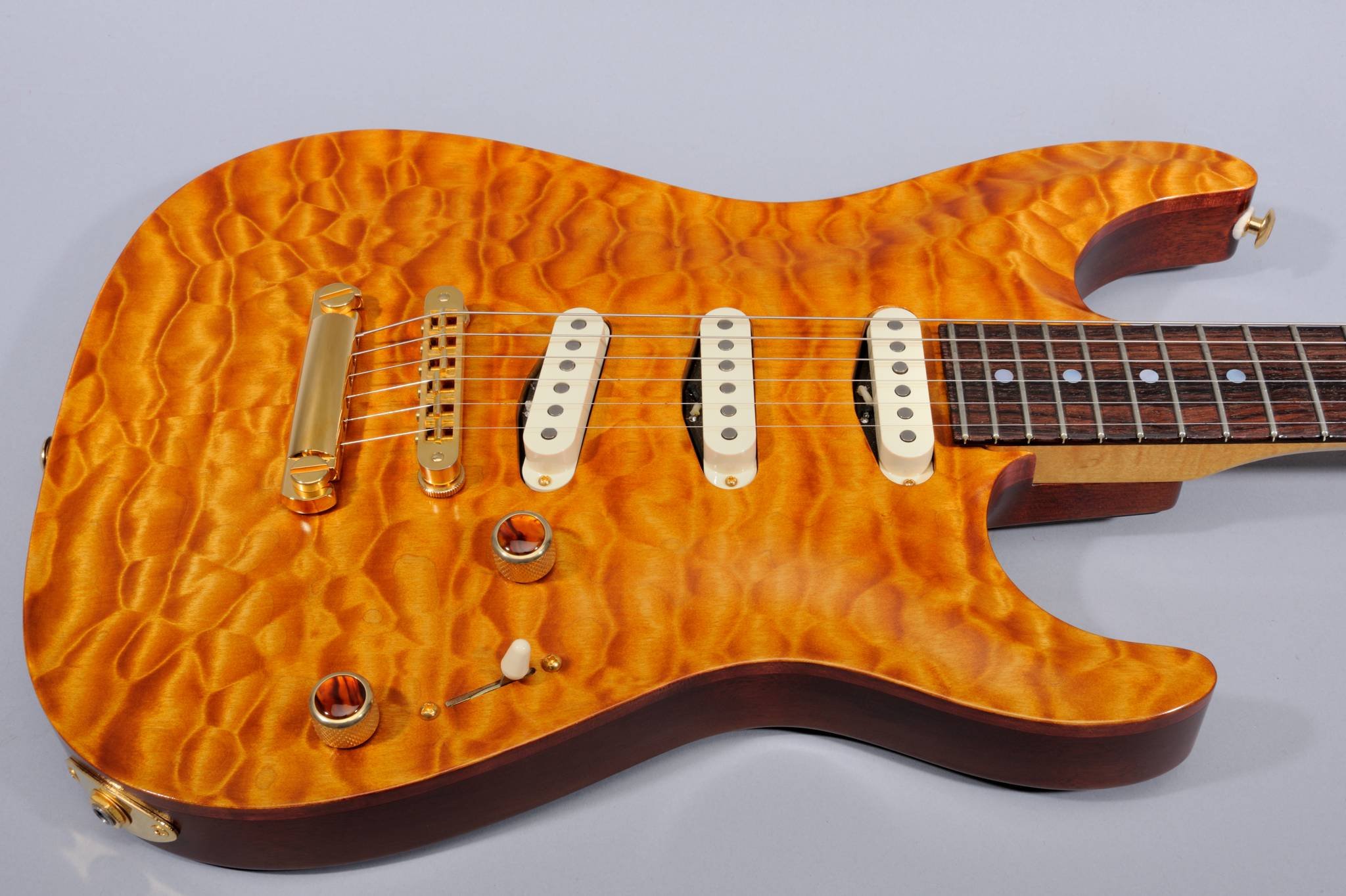 1 Piece Figured Maple Neck with Rosewood Fretboard.
