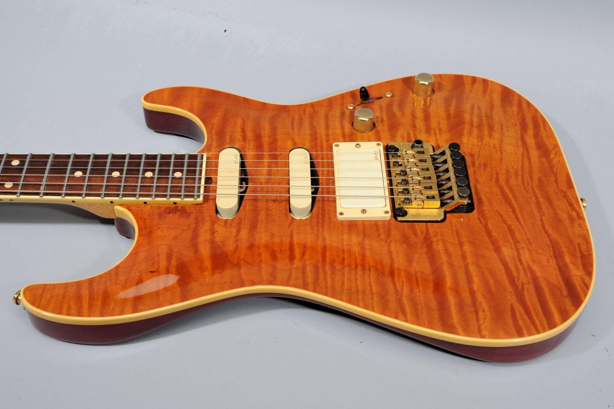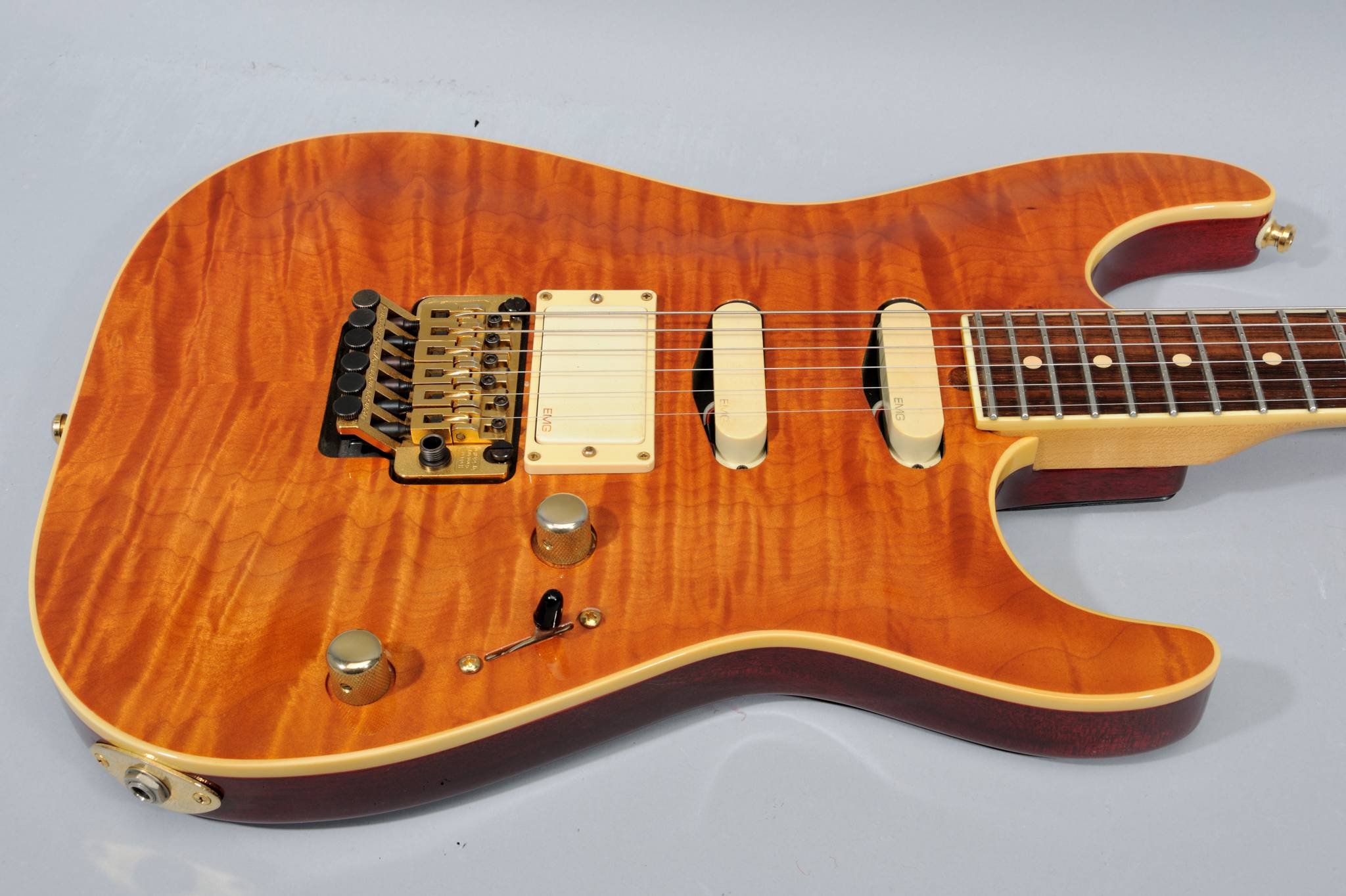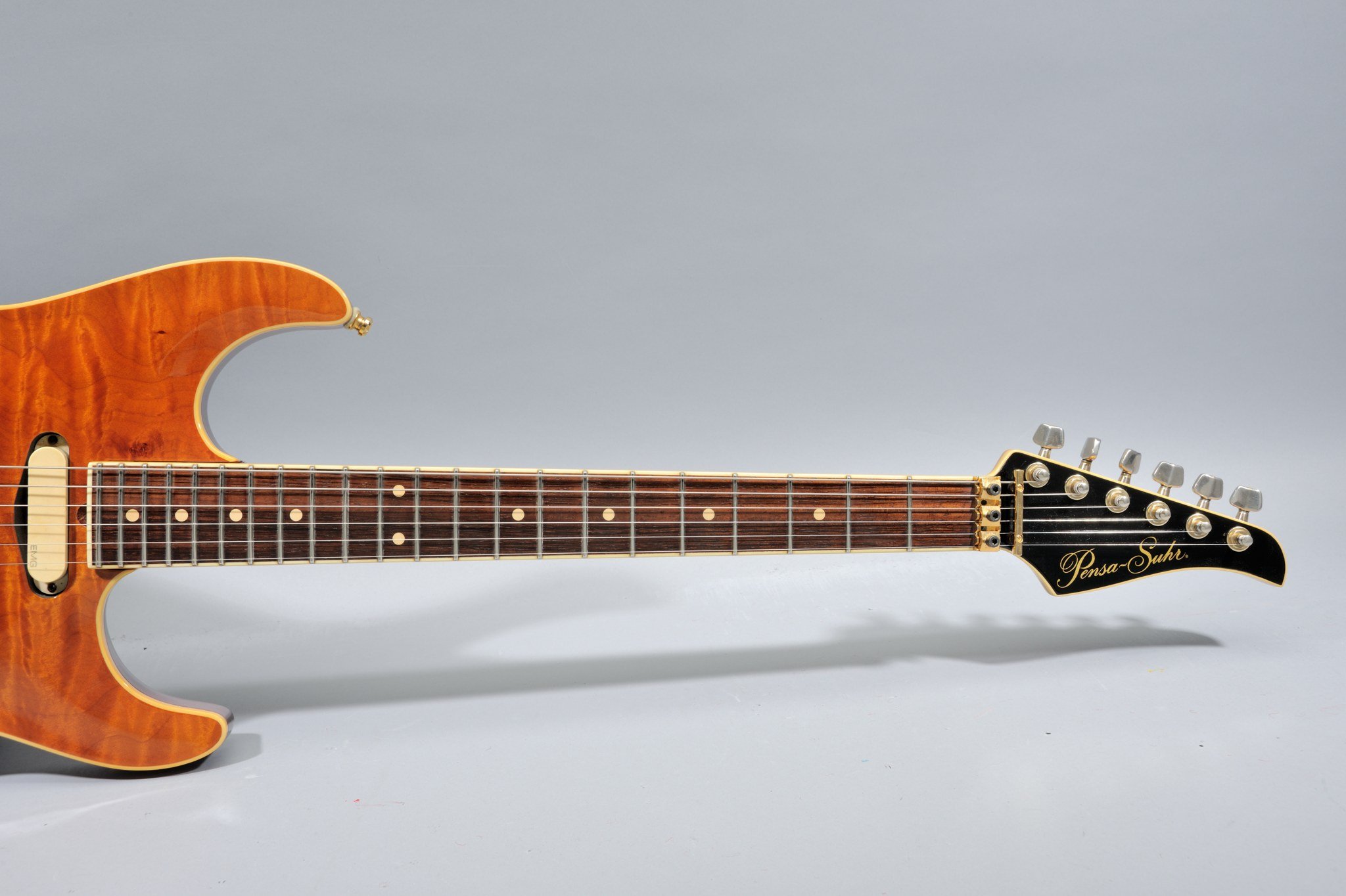 Pensa-Suhr 1991. MK1 Carved Top in Trans Caramel Finish with Black Painted Headstock.