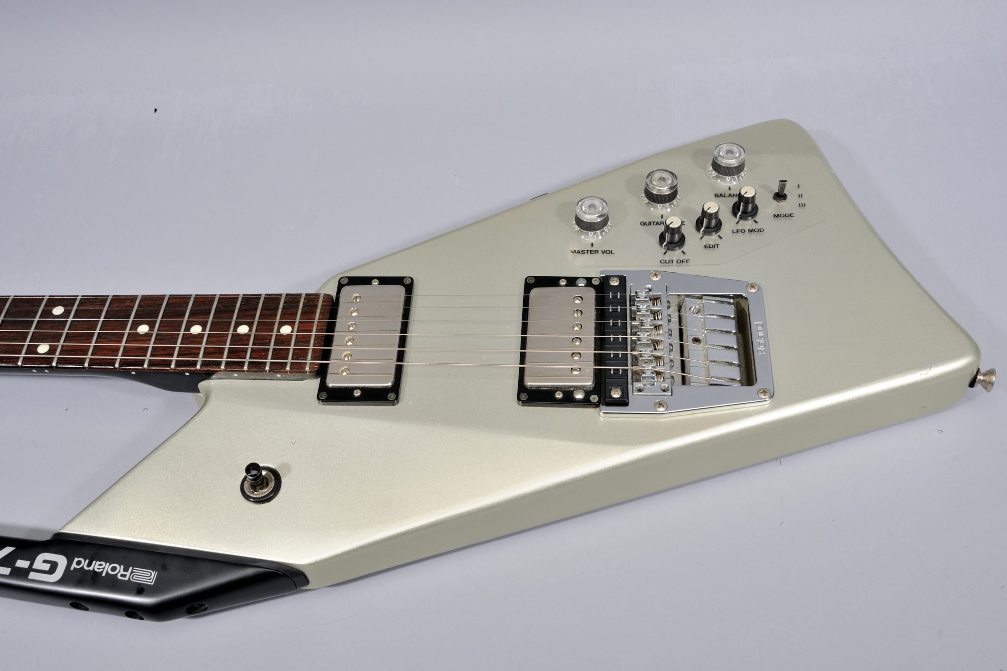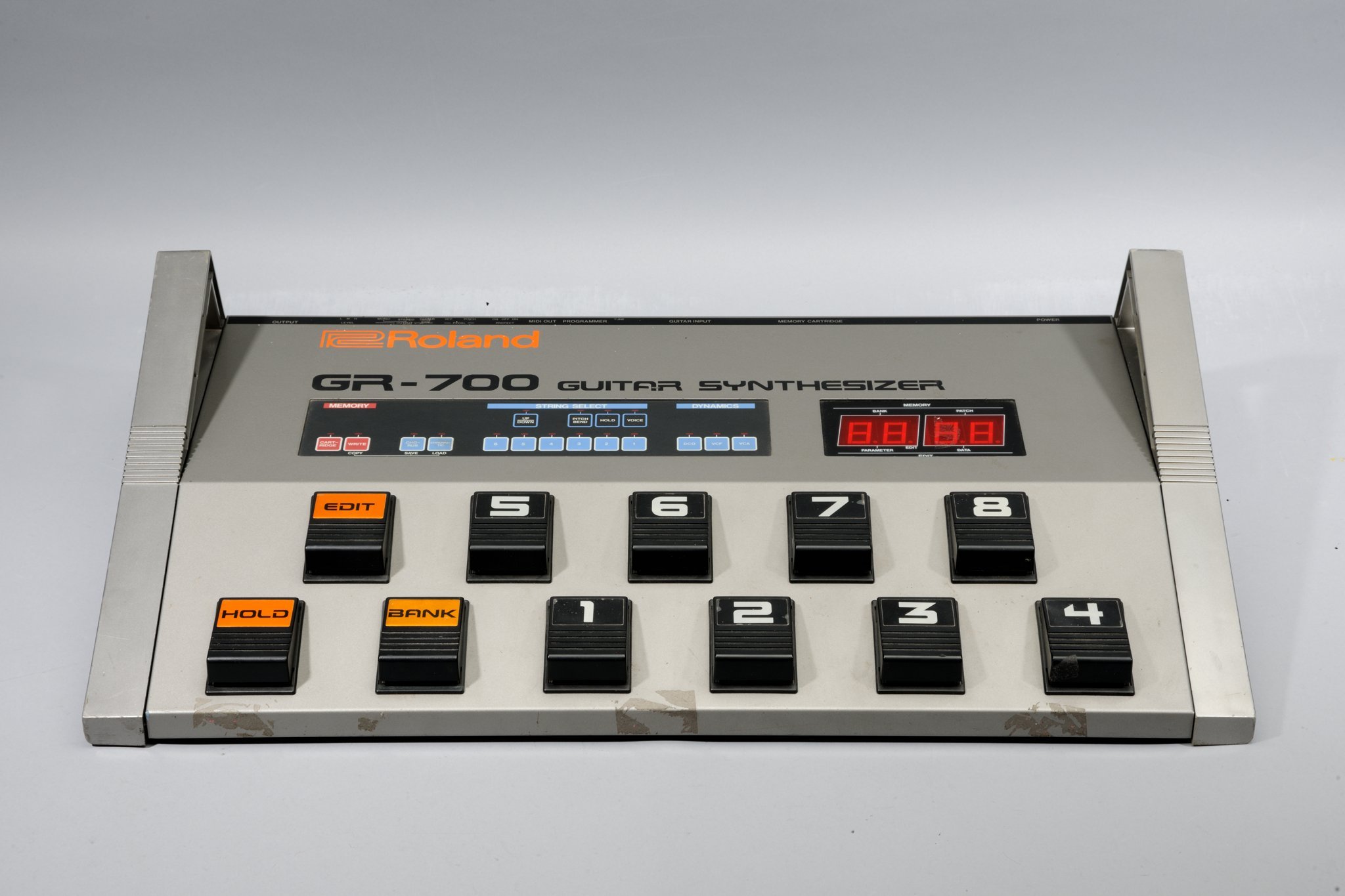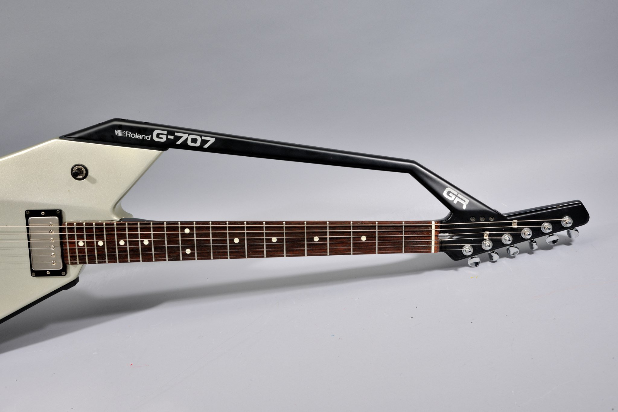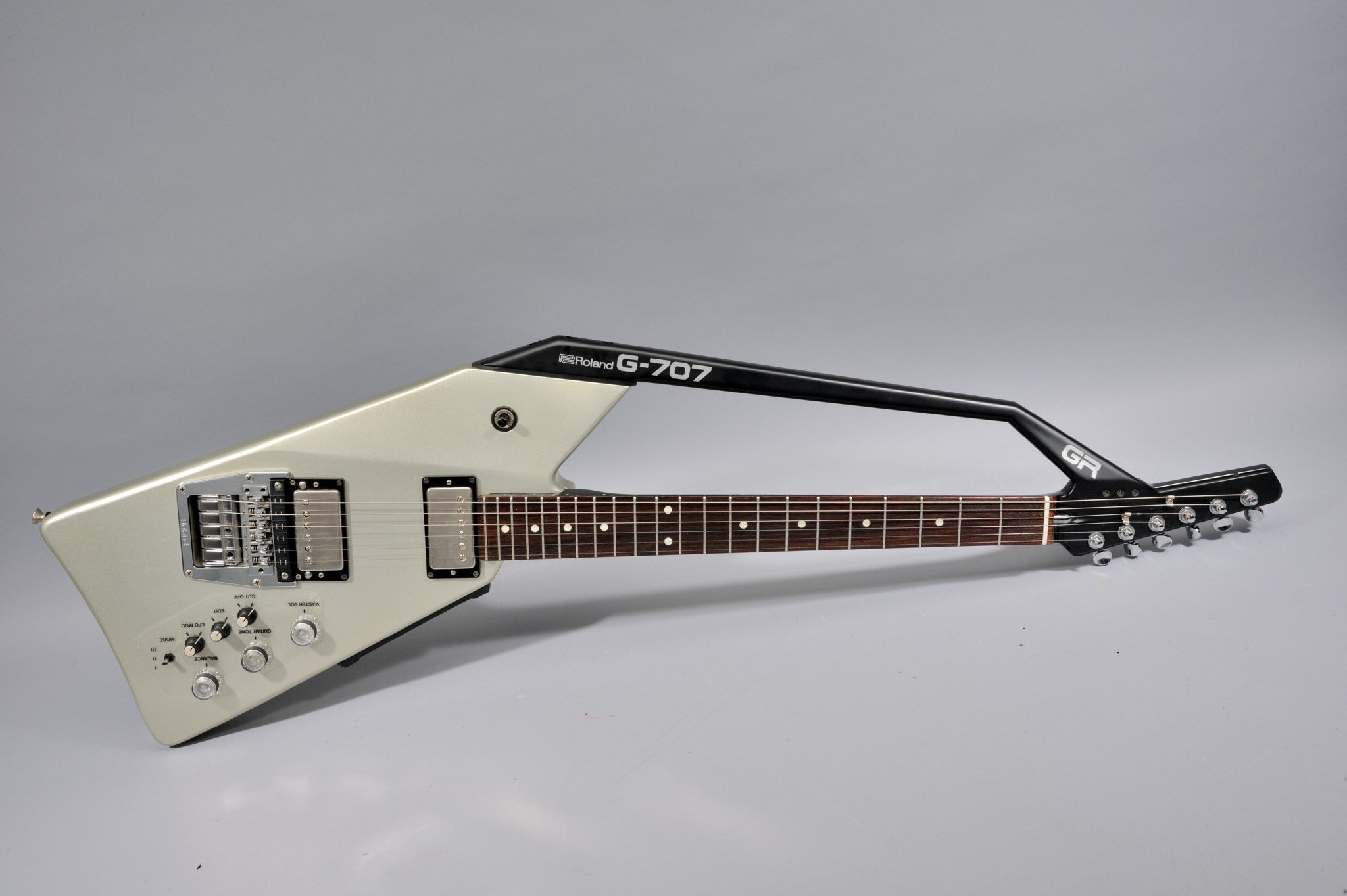 Roland's commitment to guitar synthesis took a wild and unexpected turn in 1984 with the introduction of the GR-700 guitar synthesizer, and the G-707 guitar. In its previous incarnation, Roland had conservatively leaned on the knowledge and experience of Fujigen to produce guitars with familiar shapes and sounds: the Les Paul like G-303/808 and the familiar Fender designs of the G-202/505.