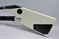• The G-707 was simply a guitar of the kind no one had ever seen, a strikingly original instrument in the generally derivative guitar market. Its 25 1/2" scale neck, and dual humbucker pickups, put it in the "super strat" category, but the wild body shape and stabilizer arm went places no major manufacturer had ventured before. I have yet to meet a person who has actually played the G-707 who did not remark on the ease and playability of the G-707 guitar. The ABS stabilizer bar really works to tame the inconsistencies of a guitar neck, if you can get past the visual effects.