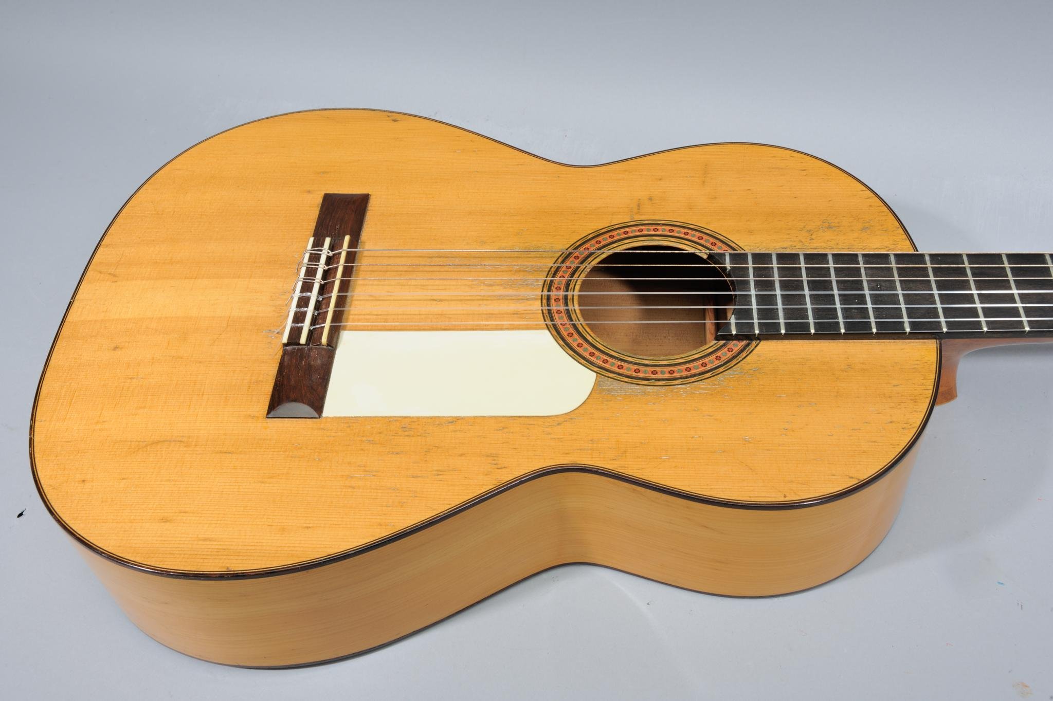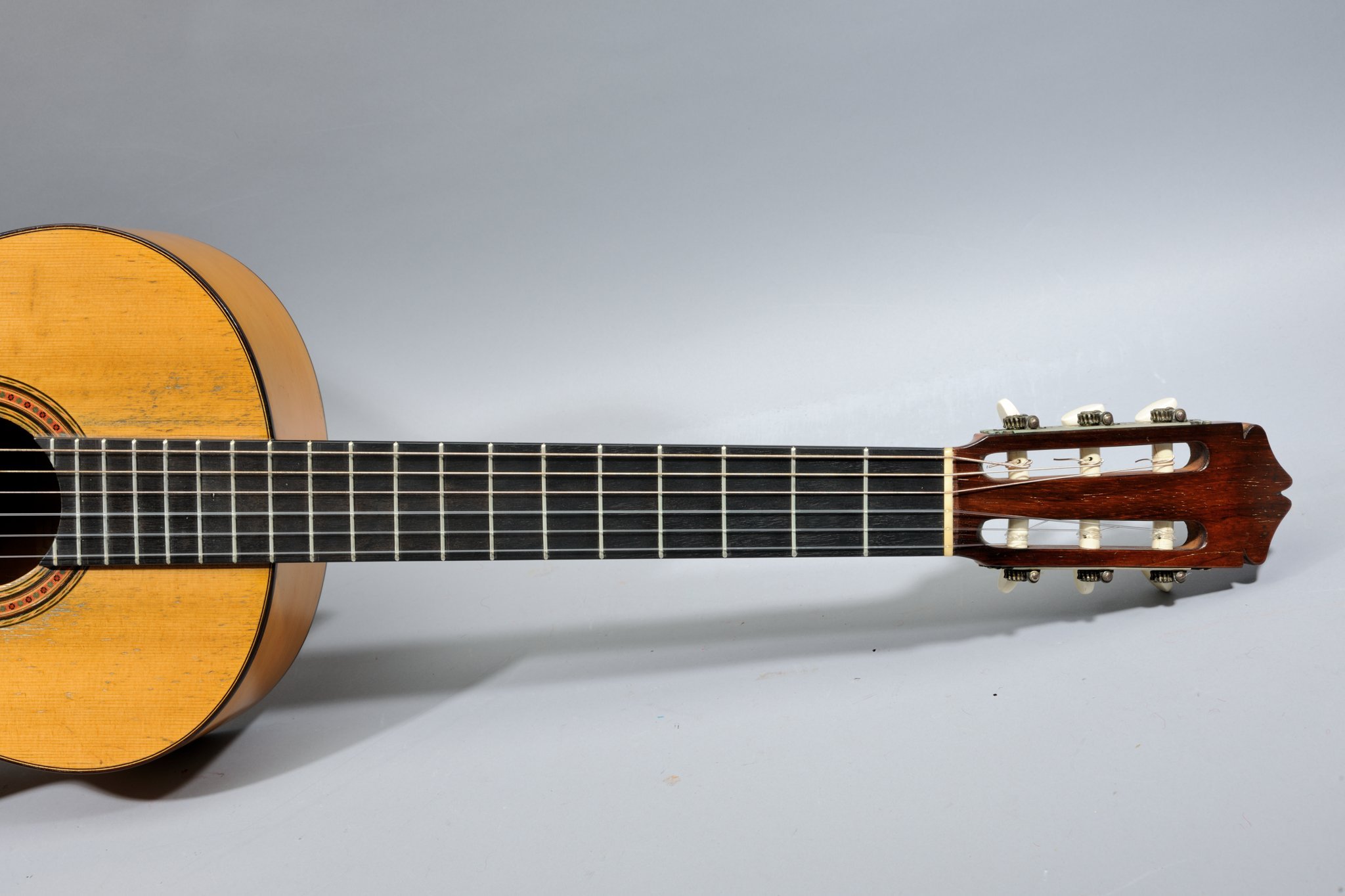 Santos Hernández was born in Madrid in 1873. In 1905, he was hired by Manuel Ramírez as head of the guitar workshop, replacing Enrique García who had gone to Barcelona. Santos Hernández seems to be the luthier who built the famous guitar that Manuel Ramírez gave to Andrés Segovia in 1912. When Manuel Ramírez died in 1916, Santos continued to work for his widow until 1920. In 1921 Santos opened his own workshop at 23 Aduana Street in central Madrid. He was a very reserved luthier in his arts and construction techniques and he always refused to transfer his knowledge to anyone. Great classical guitarists of the time played Santos Hernández guitars such as Luis Sánchez Granada, Regino Sainz de la Maza, Quintín Esquembre, as well as flamenco guitarists such as Ramón Montoya, Niño Ricardo, Sabicas, Esteban de Sanlúcar, Manolo de Huelva , Manolo de Badajoz, etc. After his death in 1943, his widow continued to run the shop and hired Marcelo Barbero as luthier. It is estimated that from 1916 until his death he built almost 300 guitars.
