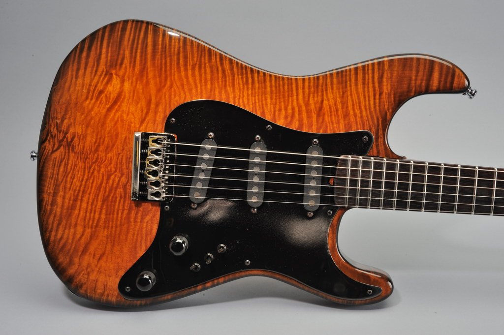 1 Piece Highly Flamed Kentucky Curly Maple Body.