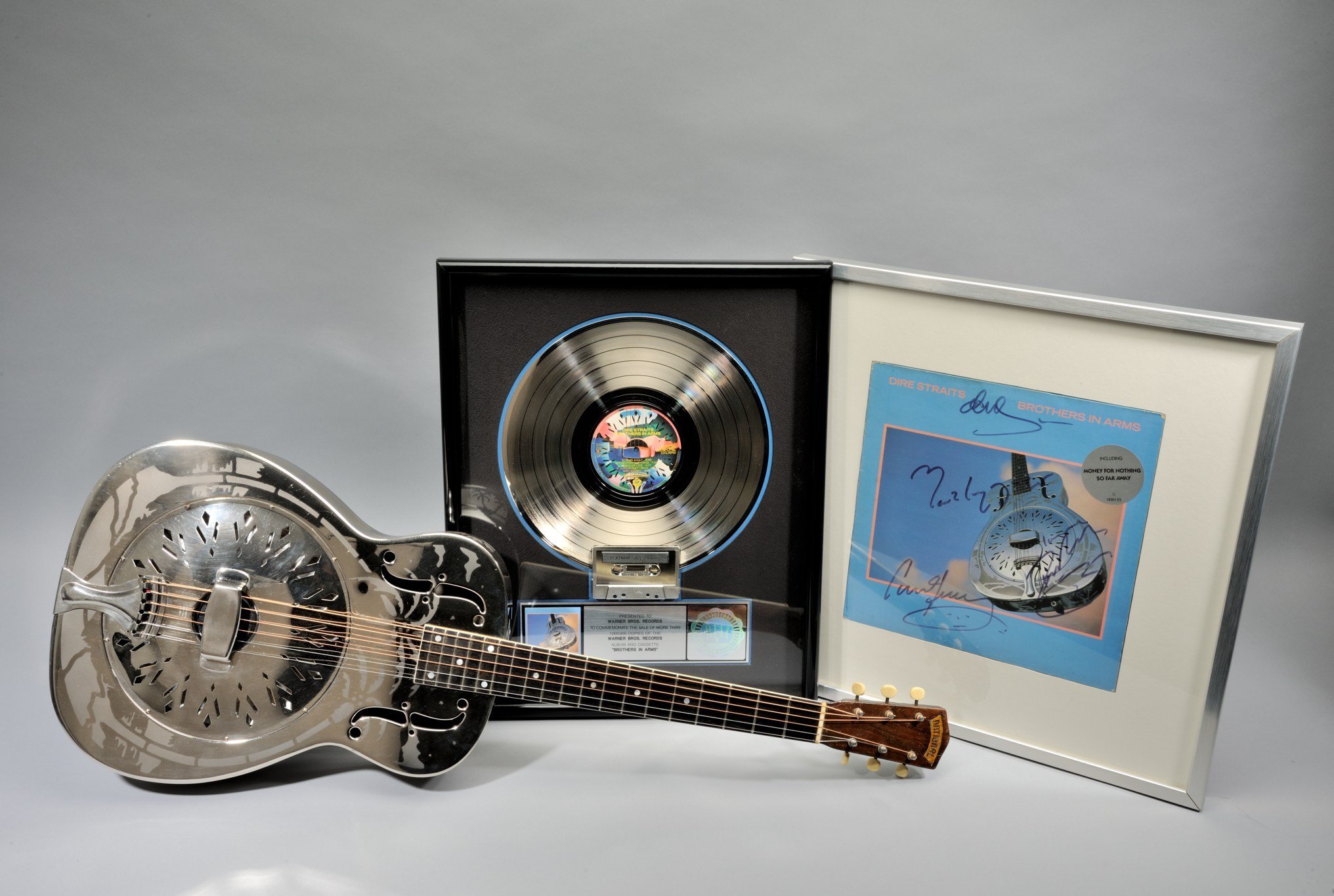 RIAA Platinum Original American Award for the sale of the first 1.000.000 Copies of LP's and Cassettes of "Brothers in Arms" in the USA, which was presented to Warner Bros Records,