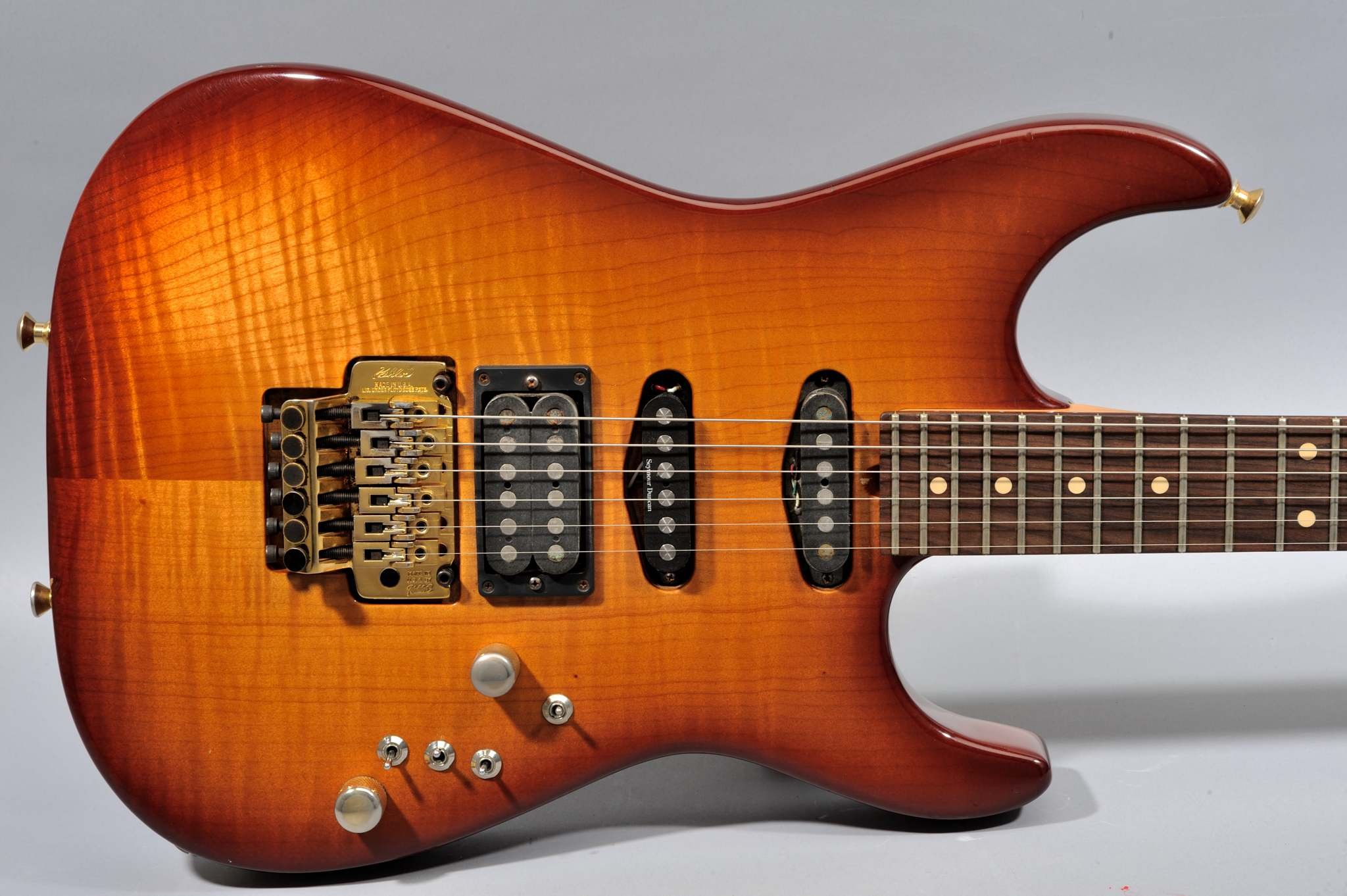 The first year, I ran the company from my garage, and the plan was to just make bodies and necks. I wasn’t planning on being a guitar manufacturer. What fed our family that first year was that Schecter Japan needed American-made pickups. The American Schecter factory closed a few months after I left, and nobody knew how to make pickups. Schecter Japan contacted me and we sat down at Carl’s Jr. and made a deal for me to make them 300 Strat pickups. I set up a little pickup-making shop in the kitchen of our house. After I got through making necks and bodies in our garage during the day, we sat up making pickups every night. That first year we lived on those pickups—we still make them to this day.