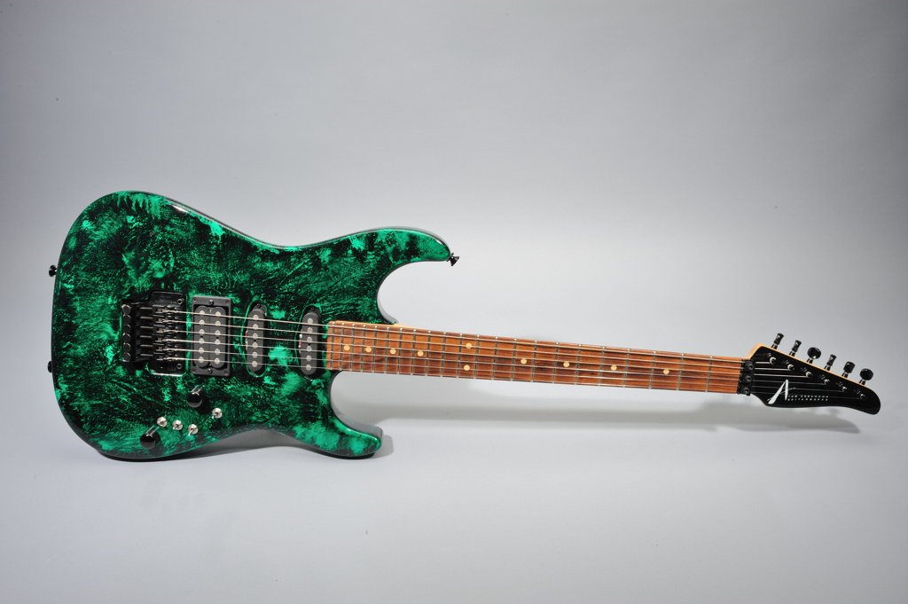 Tom Anderson 1991. Pro Am Custom in Green-Black Bowling Ball Finish with Black Painted Headstock.