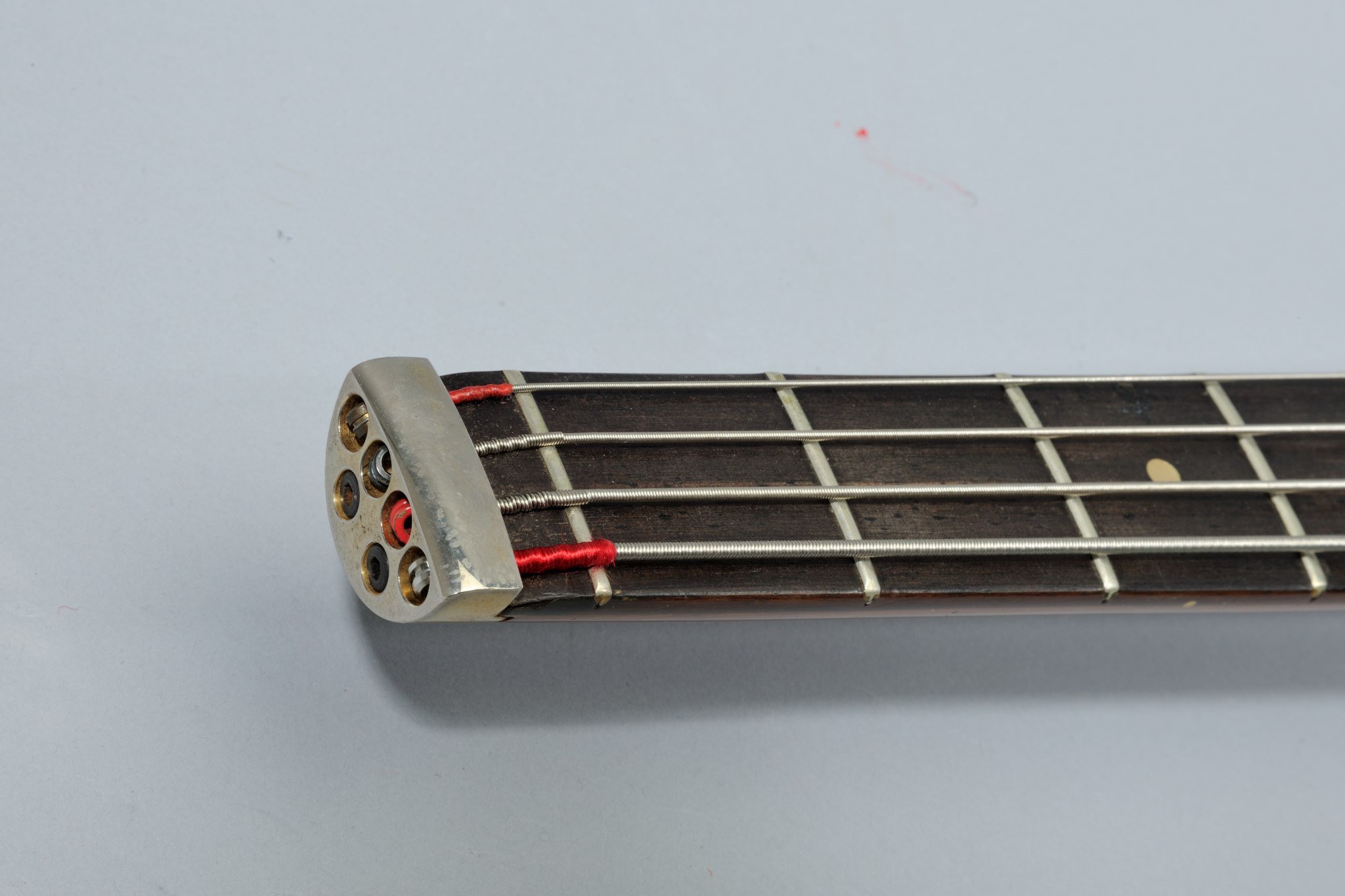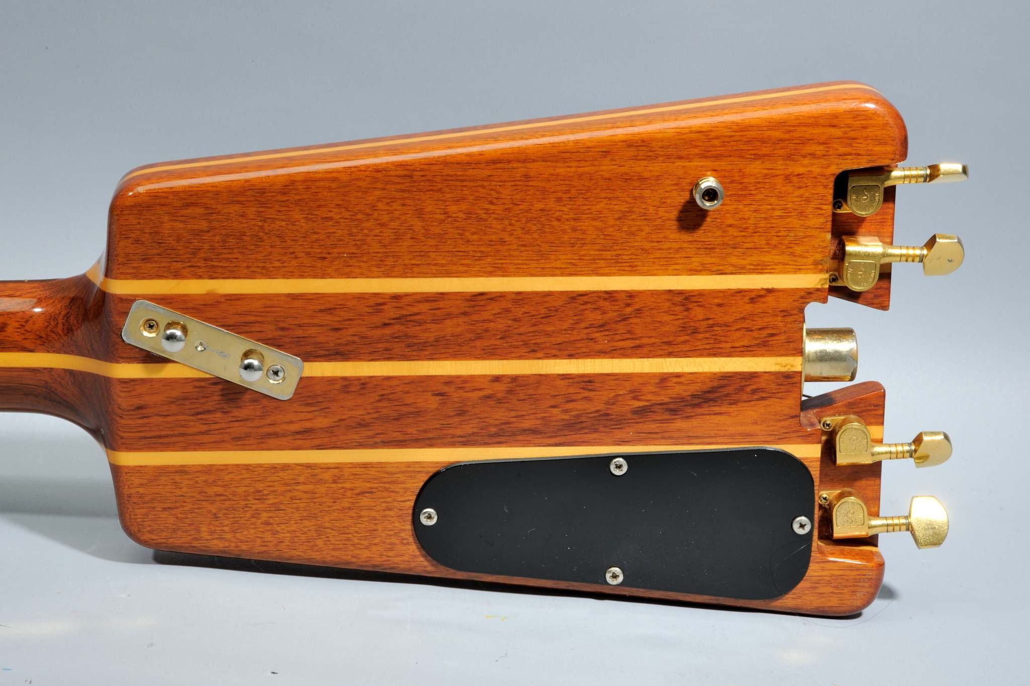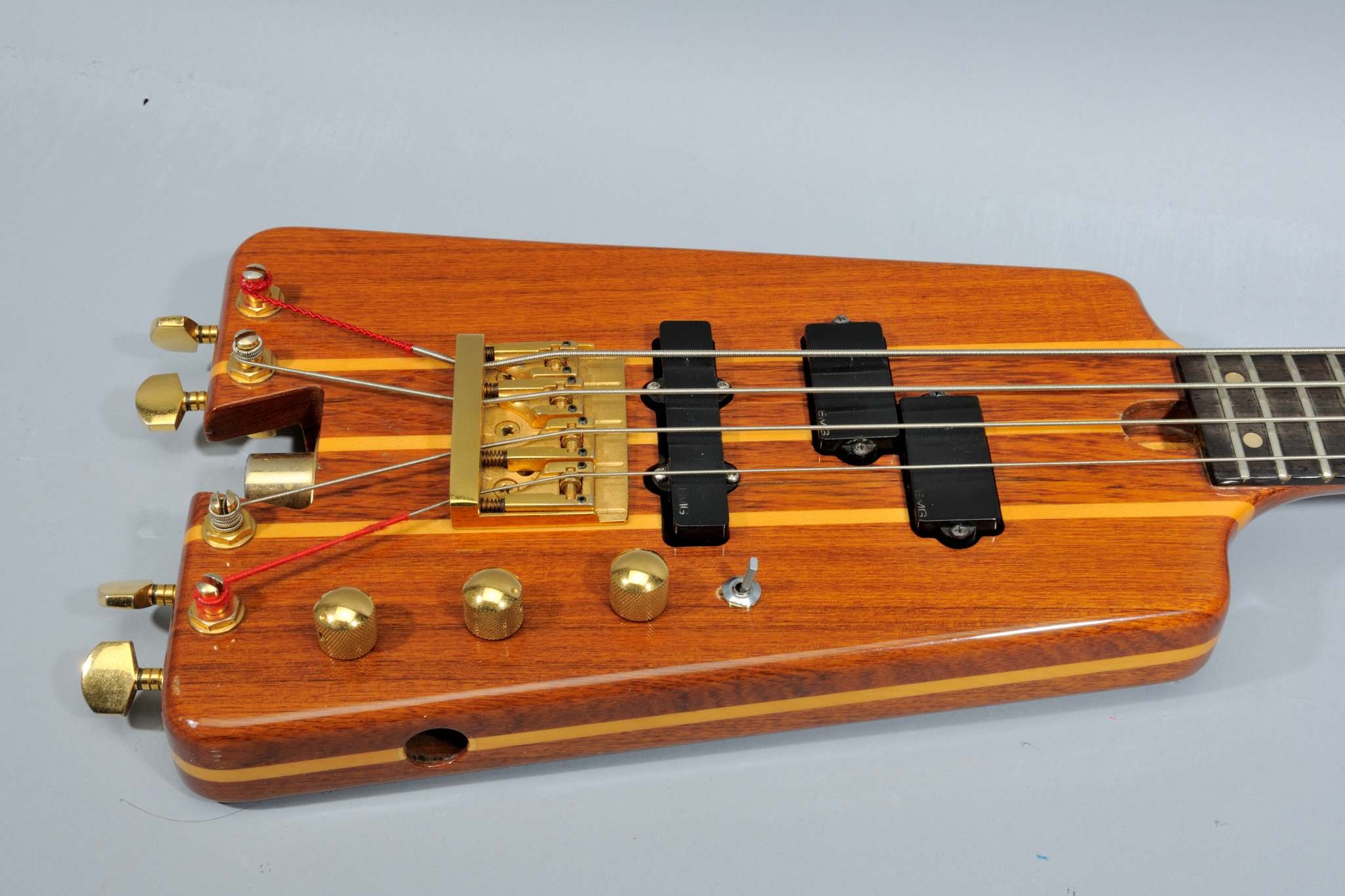 Nobby Meidel was absolutely pragmatic in the design phase of the new bass: he basically sawed off the headstock and lateral designs of the body to unmistakably make clear how he imagined the ideal headless electric bass. The Warwick boss himself created the hardware design and electronics; he even drew the schematics for the prototype. The brass parts were supplied by metal turner Walter Zeitler from Röslau, the rosewood came from a local lumber dealer, the 3-D bridges from Schaller in the town of Feucht, the pickups from Shadow in the town of Erlangen and the instrument’s finish was done at a specialty shop in the town of Eltersdorf. That’s how shortly thereafter a novel instrument, completely built in the Franconia region of Germany, came to market.