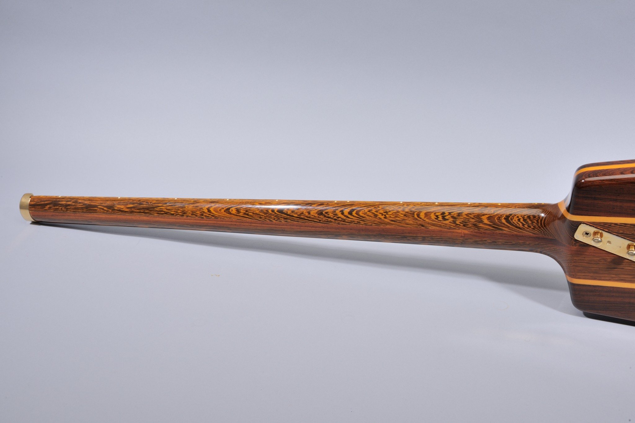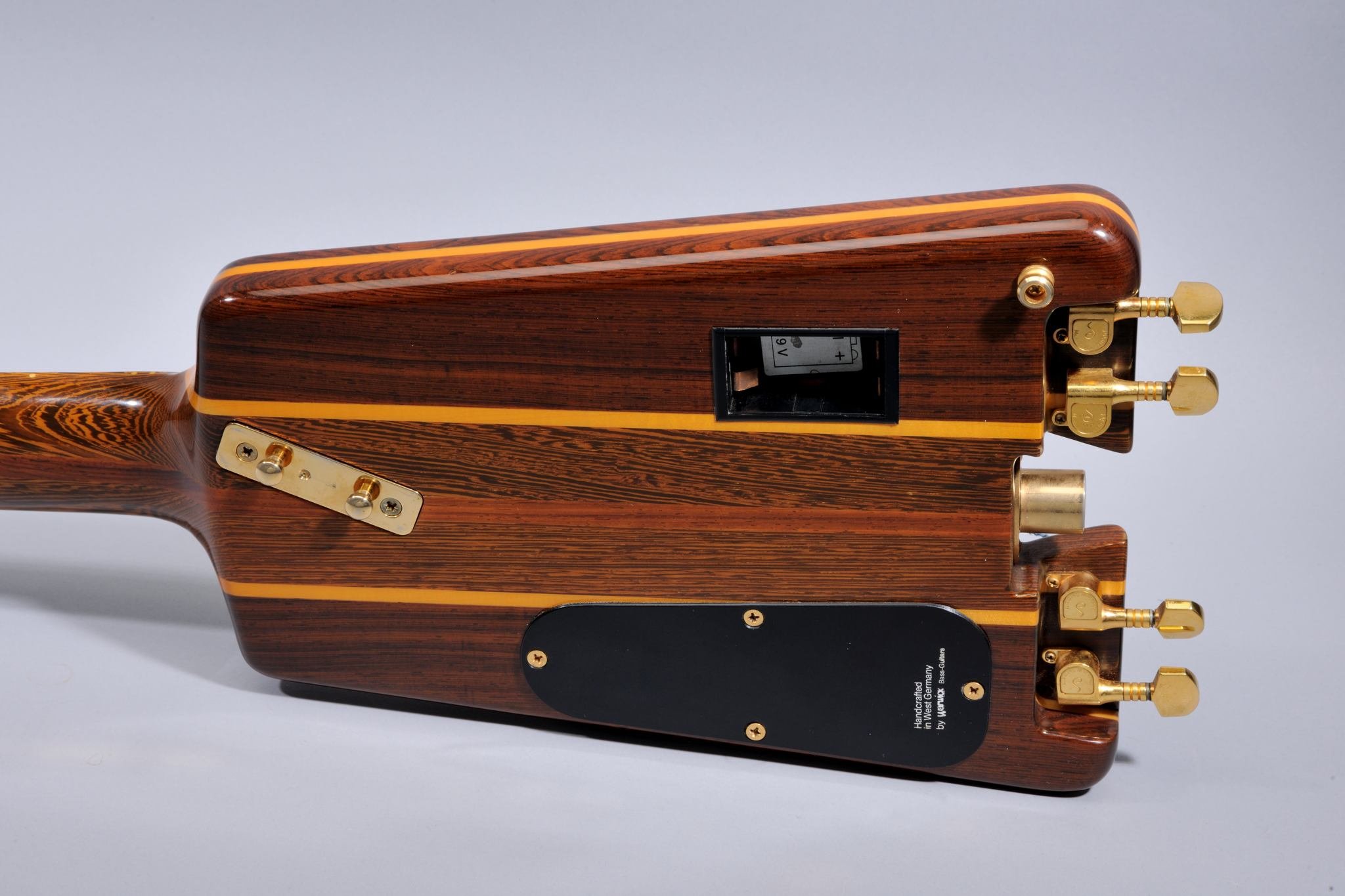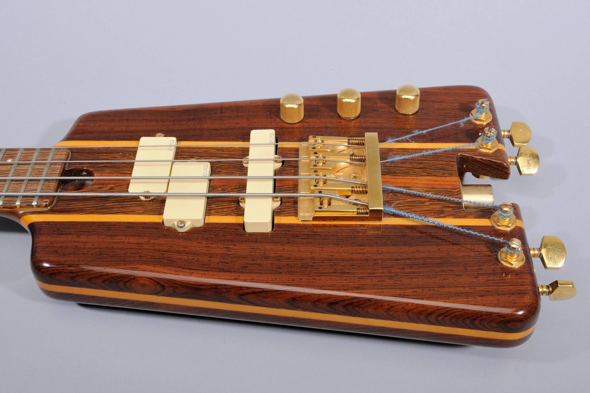 Nobby Meidel was absolutely pragmatic in the design phase of the new bass: he basically sawed off the headstock and lateral designs of the body to unmistakably make clear how he imagined the ideal headless electric bass. The Warwick boss himself created the hardware design and electronics; he even drew the schematics for the prototype. The brass parts were supplied by metal turner Walter Zeitler from Röslau, the rosewood came from a local lumber dealer, the 3-D bridges from Schaller in the town of Feucht, the pickups from Shadow in the town of Erlangen and the instrument’s finish was done at a specialty shop in the town of Eltersdorf. That’s how shortly thereafter a novel instrument, completely built in the Franconia region of Germany, came to market.