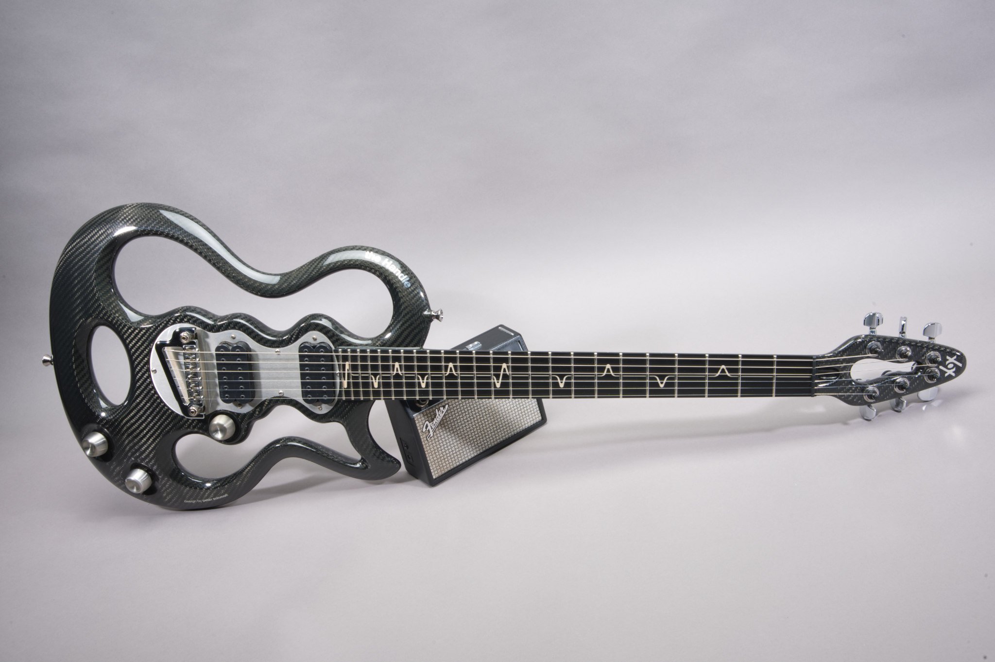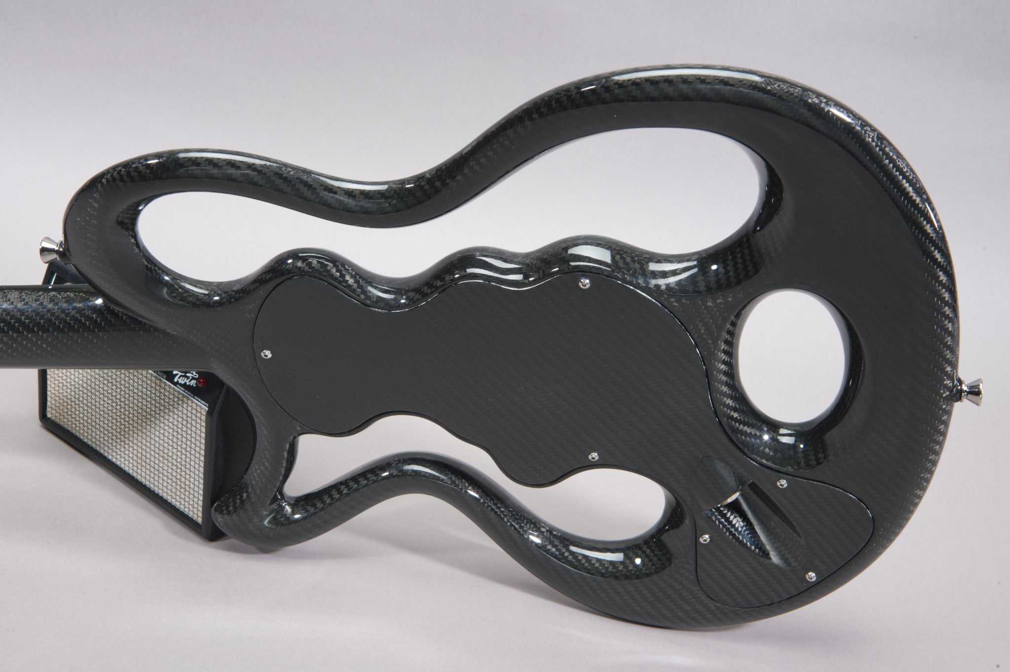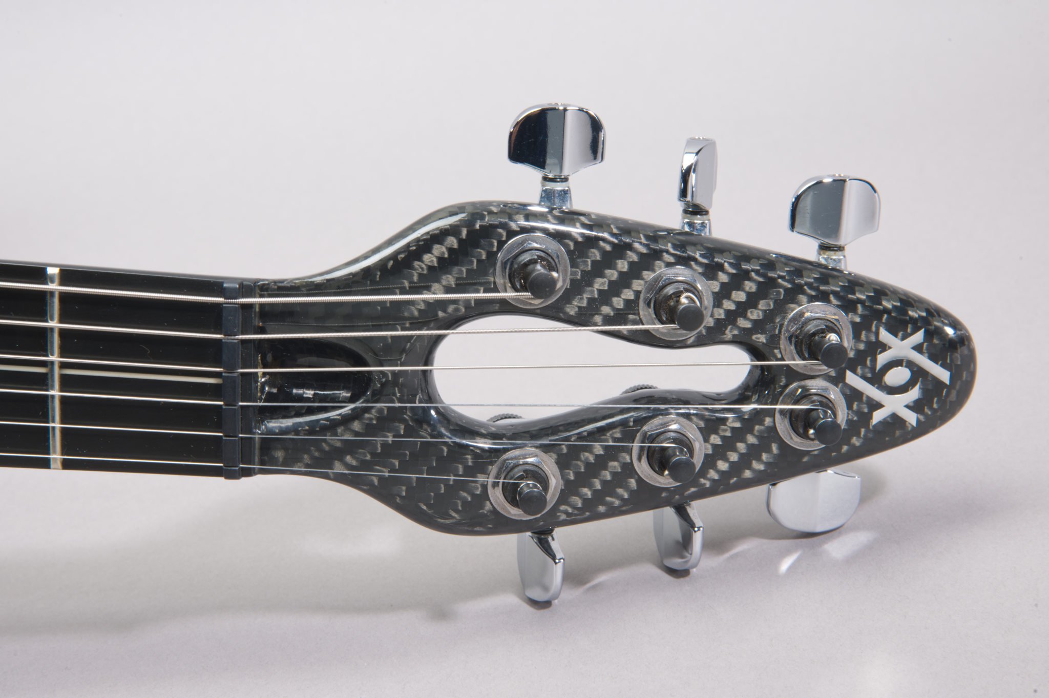 The Handle model manufactured by XOX Audio Tools was designed by Peter Salomon. The body and neck of the guitar form a hollow carbon fiber monocoque structure.
